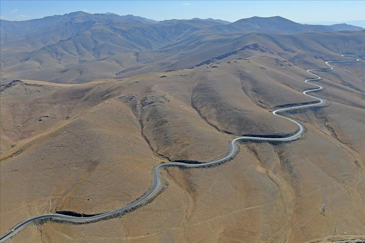 Van ve Hakkari illerinin, yüksek dorukları, akarsuları, ovaları, tarım arazileri, yeşillik alanları, yolları, mahalle ve köyleri, metrelerce yükseklikten helikopterle kuş bakışı görüntülendi. Fotoğrafta, Van-Hakkari karayolunda bulunan, 32 virajlar olarak da adlandırılan, 2 bin 730 rakımlı Güzeldere Geçidi'nden genel bir görünüm yer almakta. (Özkan Bilgin - Anadolu Ajansı)Özkan Bilgin
