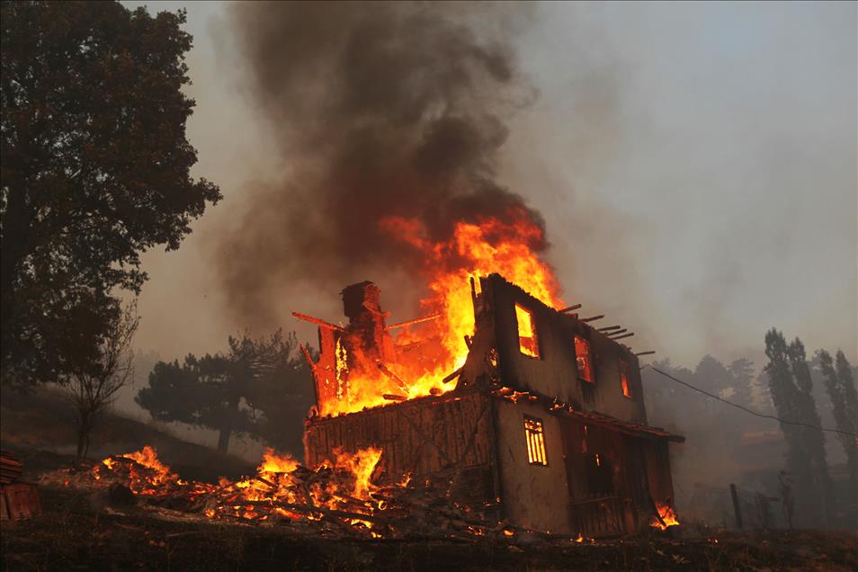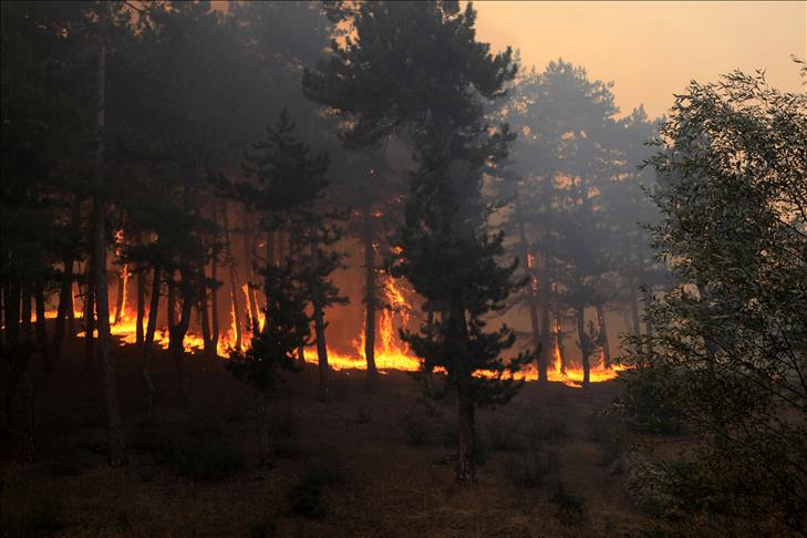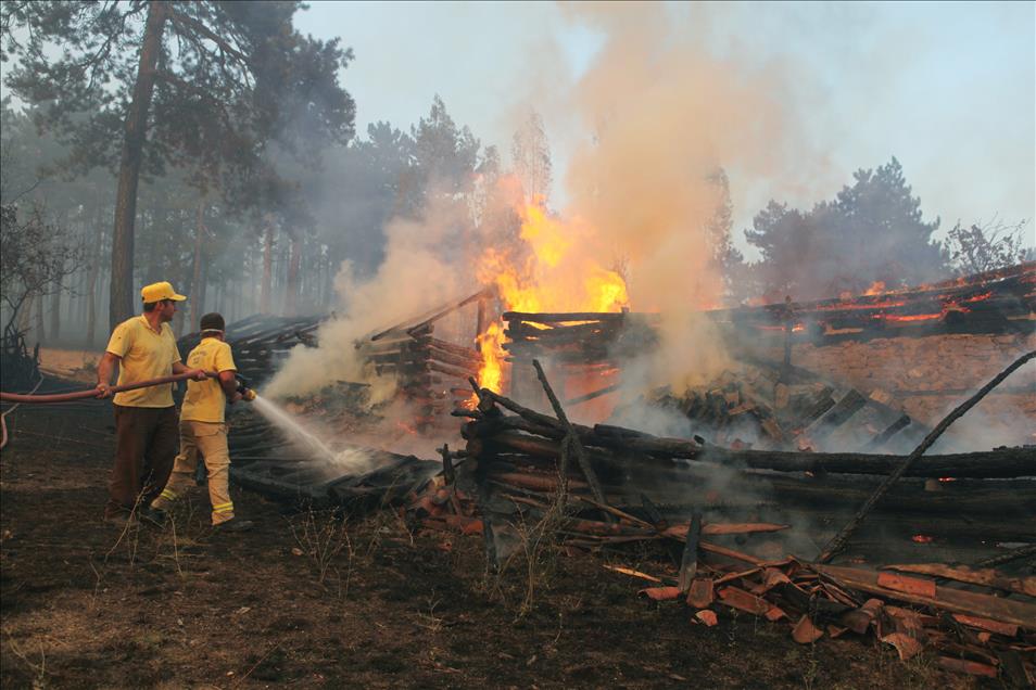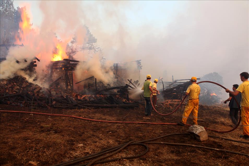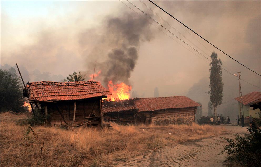 KUTAHYA'NIN TAVSANLI ILCESINDE HENUZ BELIRLENEMEYEN NEDENLE 6 AYRI NOKTADA CIKAN ORMAN YANGINI DOLAYISIYLA BOSALTILAN CAYIROLUK KOYUNDE 14 EV TAMAMEN YANDI. (ANADOLU AJANSI - SELMA KOCABAS) (20120826)SELMA KOCABAS