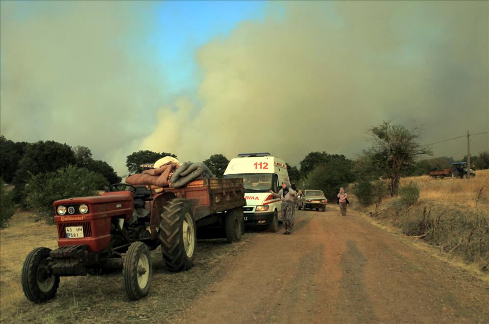 KUTAHYA'NIN TAVSANLI ILCESINDE HENUZ BELIRLENEMEYEN BIR NEDENLE 6 AYRI NOKTADA ORMAN YANGINI CIKTI. ORMAN YANGINI DOLAYISIYLA BOSALTILAN CAYIROLUK KOYUNDE, BAZI EV VE AHIRLAR YANDI. (ANADOLU AJANSI - SELMA KOCABAS) (20120826)SELMA KOCABAS