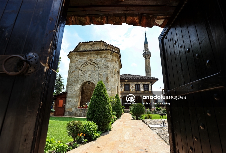 Kuzey Makedonya'nın Kalkandelen (Tetovo) şehrindeki Osmanlı mirası Alaca Cami, zarafetiyle ender camilerden biri olarak gösteriliyor.