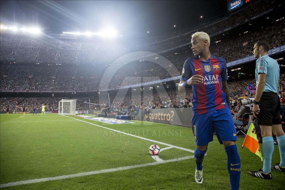 İspanya Birinci Futbol Ligi (La Liga) 5. hafta mücadelesinde, Barcelona ile Atletico Madrid takımları Nou Camp Stadı’nda karşı karşıya geldi. Barcelonalı futbolcu Neymar Jr (fotoğrafta). ( Albert Llop - Anadolu Ajansı )Albert Llop