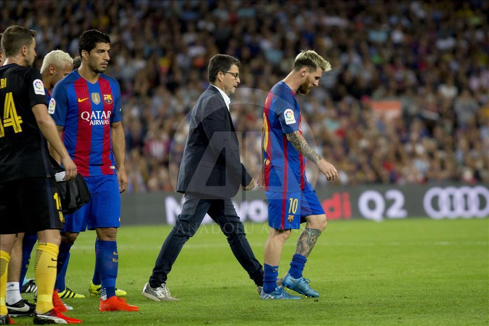 İspanya Birinci Futbol Ligi (La Liga) 5. hafta mücadelesinde, Barcelona ile Atletico Madrid takımları Nou Camp Stadı’nda karşı karşıya geldi. Bir pozisyonun ardından Barcelonalı futbolcu Lionel Messi (sağda), sakatlık geçirdi. ( Albert Llop - Anadolu Ajansı )Albert Llop