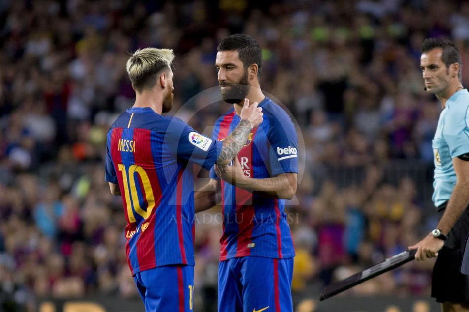 İspanya Birinci Futbol Ligi (La Liga) 5. hafta mücadelesinde, Barcelona ile Atletico Madrid takımları Nou Camp Stadı’nda karşı karşıya geldi. Barcelonalı futbolcu Arda Turan (sol 2). ( Albert Llop - Anadolu Ajansı )Albert Llop