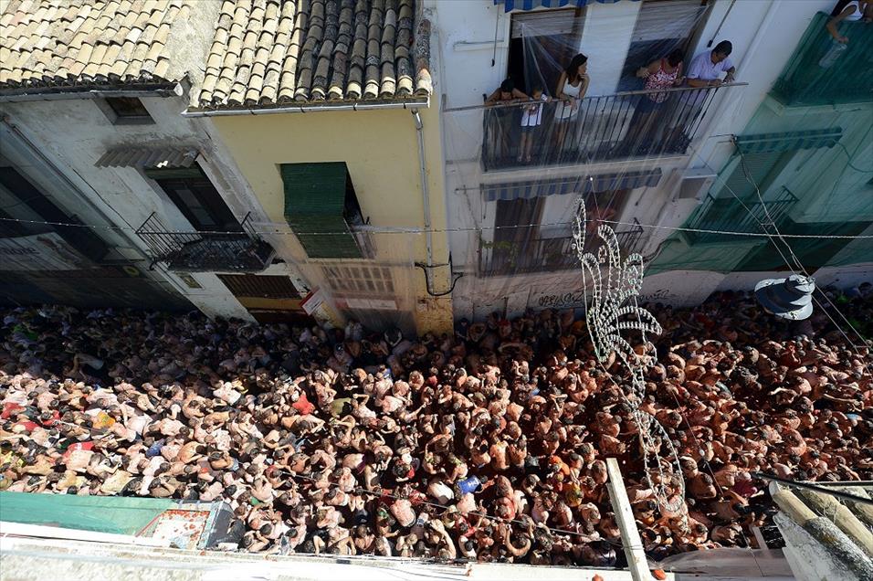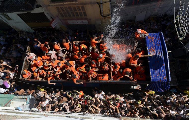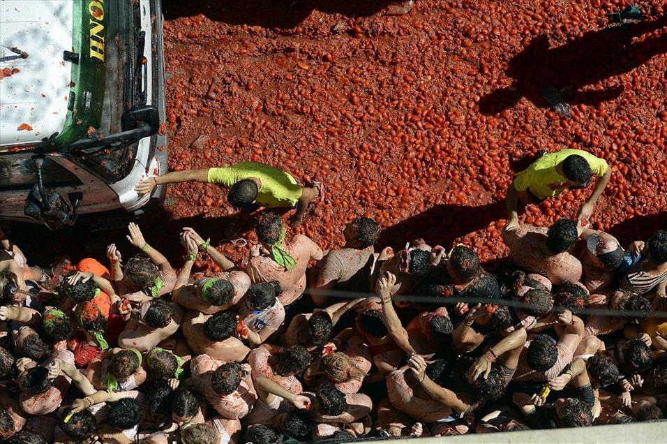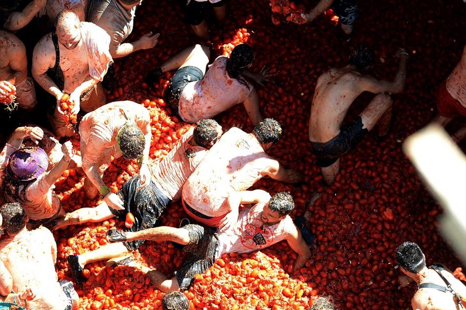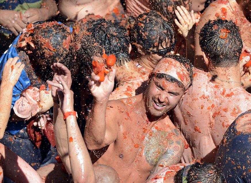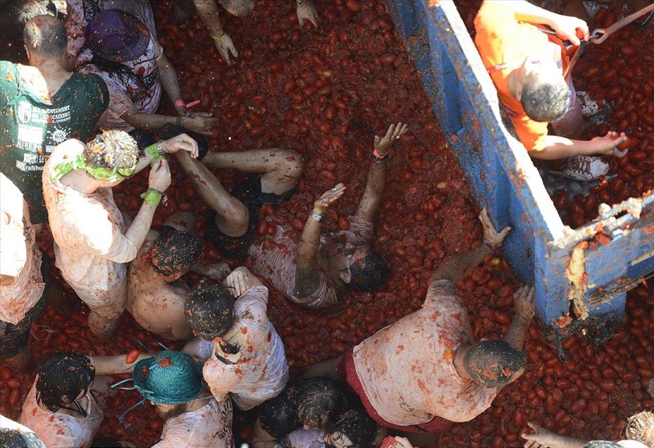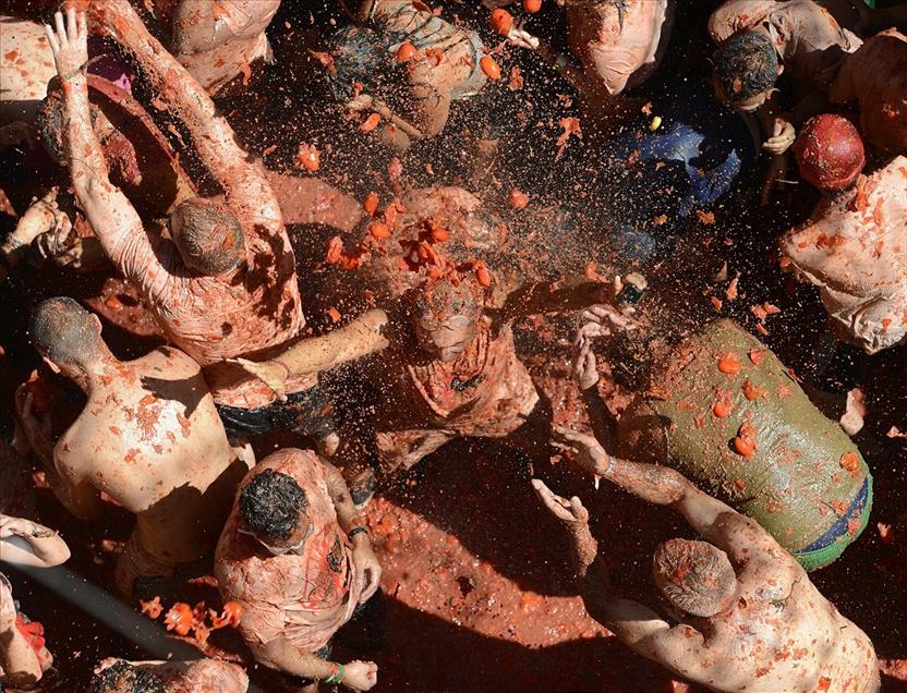 İspanya'nın doğusundaki Valencia kentinin Bunol ilçesinde 69 yıldır devam eden bir gelenek olan Domates Savaşı (La Tomatina) festivali bu yıl da renkli görüntülere sahne oldu. (Evrim Aydın - Anadolu Ajansı)Evrim Aydın