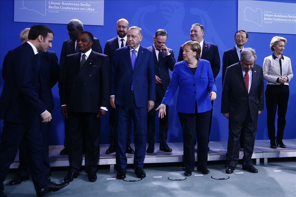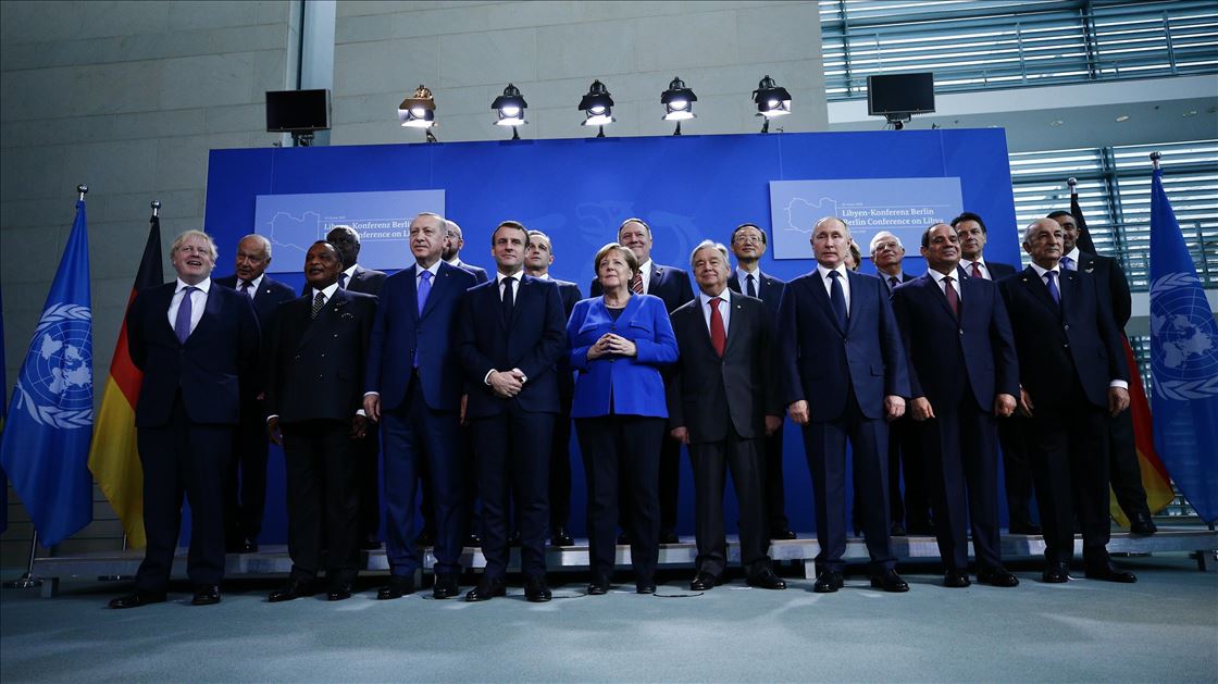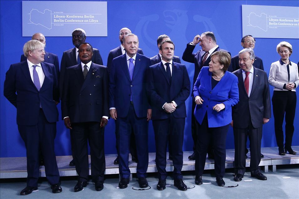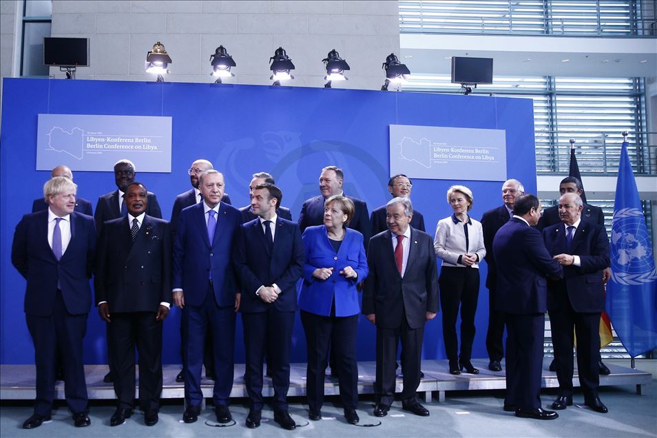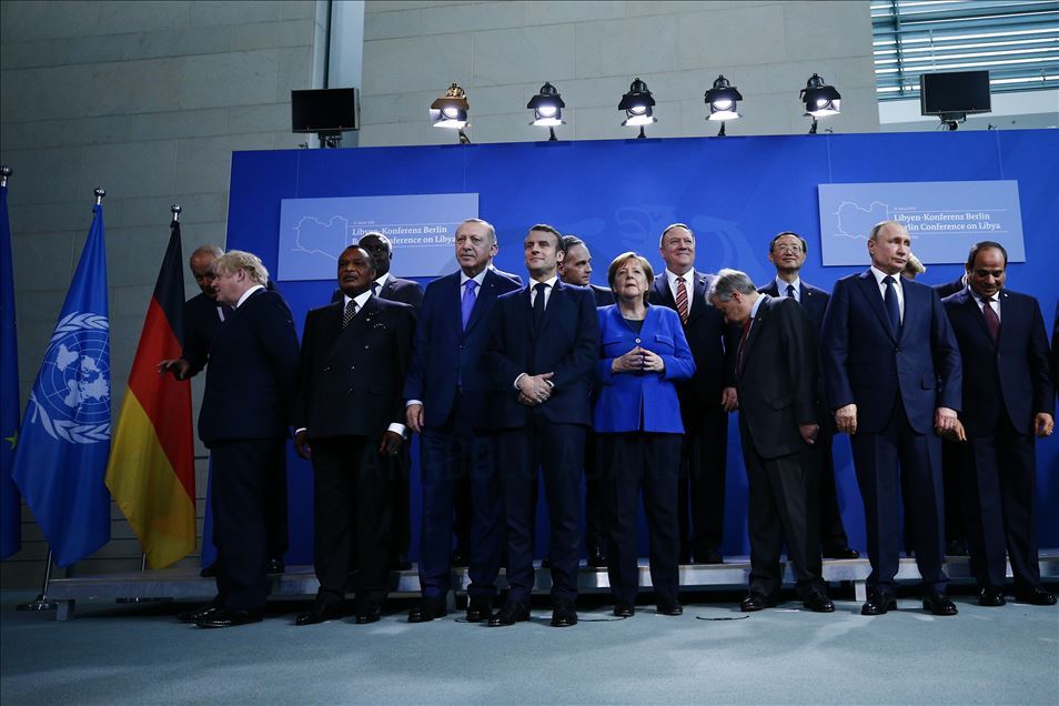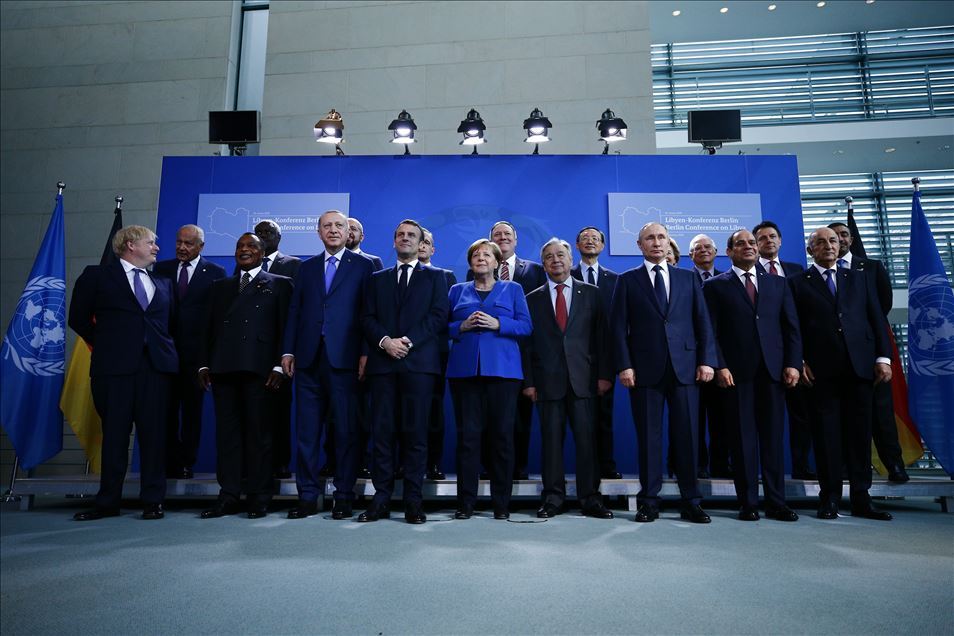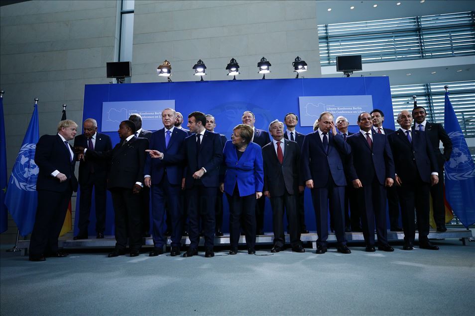 Almanya’nın başkenti Berlin’de gerçekleştirilen Libya konulu konferansa katılan Türkiye Cumhurbaşkanı Recep Tayyip Erdoğan, Almanya Başbakanı Angela Merkel, Rusya Devlet Başkanı Vladimir Putin, İtalya Başbakanı Giuseppe Conte, Fransa Cumhurbaşkanı Emmanuel Macron, İngiltere Başbakanı Boris Johnson, Birleşmiş Milletler (BM) Genel Sekreteri Antonio Guterres, AB Komisyonu Başkanı Ursula von der Leyen, AB Konseyi Başkanı Charles Michel, aile fotoğrafı için bir araya geldi. ( Abdülhamid Hoşbaş - Anadolu Ajansı )Abdülhamid Hoşbaş