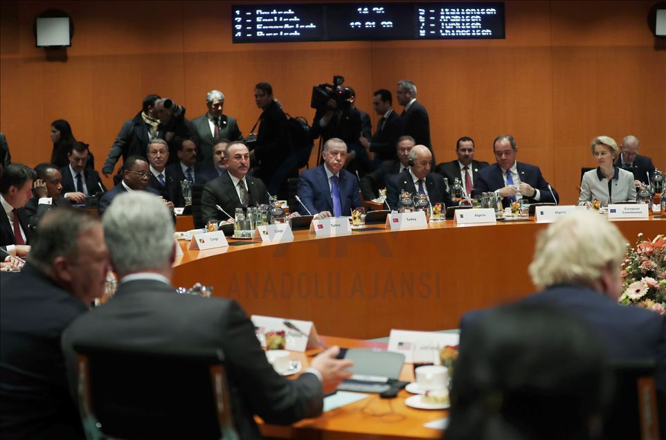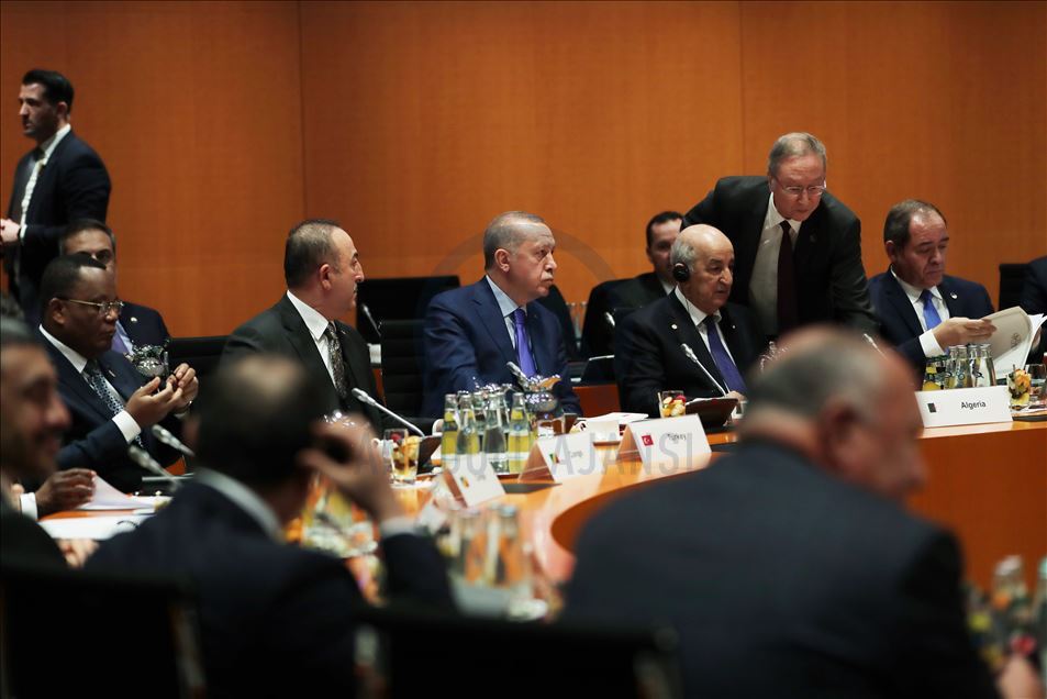 Berlin'de Almanya Başbakanı Angela Merkel'in ev sahipliğinde Libya konusunda gerçekleştirilen zirve başladı. Zirveye Türkiye Cumhurbaşkanı Recep Tayyip Erdoğan ve Dışişleri Bakanı Mevlüt Çavuşoğlu da katıldı. ( Cumhurbaşkanlığı / Murat Çetinmühürdar - Anadolu Ajansı )Cumhurbaşkanlığı / Murat Çetinmühürdar