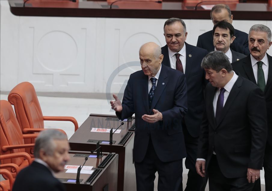 TBMM Genel Kurulu, Libya'ya asker gönderilmesine ilişkin Cumhurbaşkanlığı tezkeresini görüşmek üzere Meclis Başkanı Mustafa Şentop başkanlığında toplandı. Oturuma, MHP Genel Başkanı Devlet Bahçeli de katıldı. ( Metin Aktaş - Anadolu Ajansı )Metin Aktaş