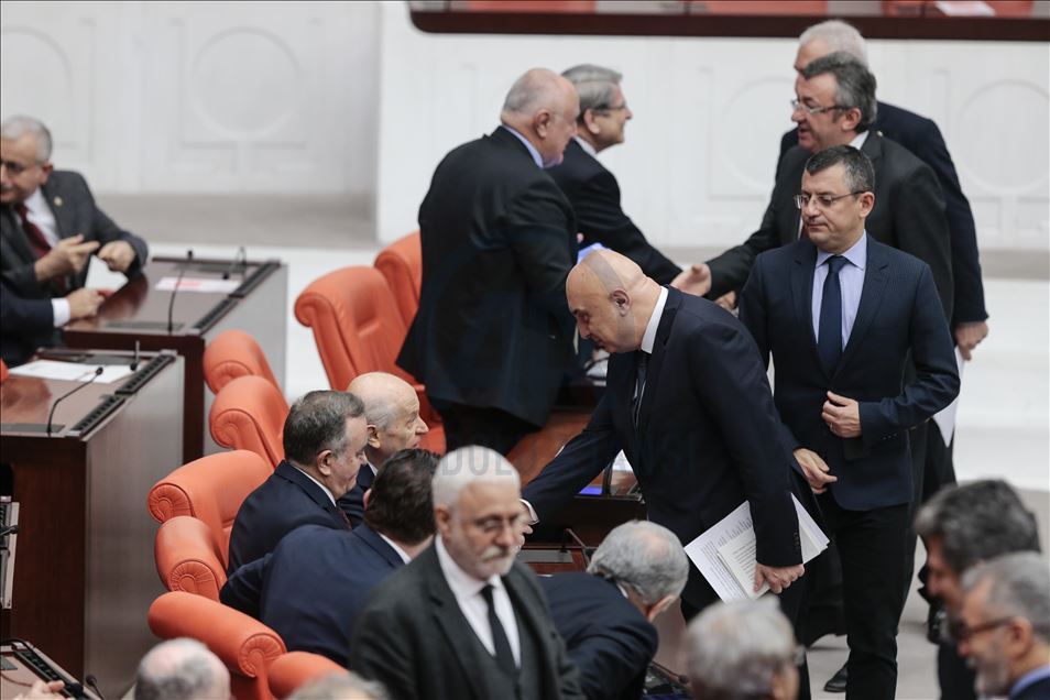 TBMM Genel Kurulu, Libya'ya asker gönderilmesine ilişkin Cumhurbaşkanlığı tezkeresini görüşmek üzere Meclis Başkanı Mustafa Şentop başkanlığında toplandı. Oturum öncesi CHP Genel Başkan Yardımcısı Yıldırım Kaya ile CHP Grup Başkanvekilleri Özgür Özel ve Engin Özkoç, AK Parti Grup Başkanı Mehmet Naci Bostancı ile selamlaştı. ( Metin Aktaş - Anadolu Ajansı )Metin Aktaş