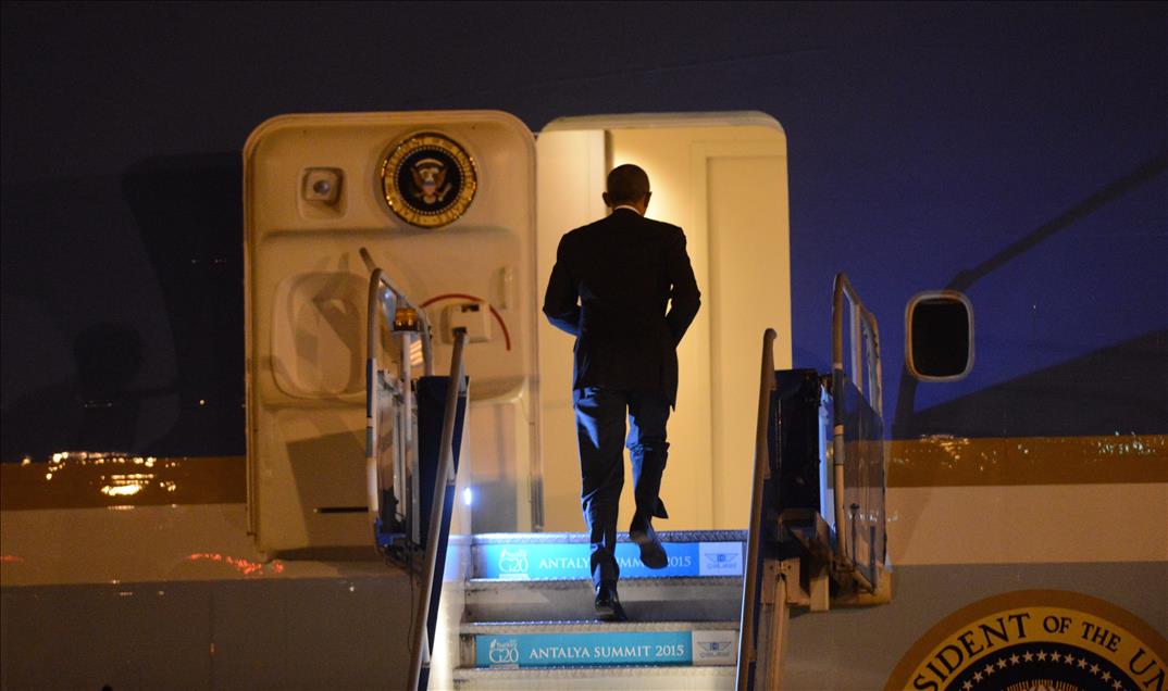 ABD Başkanı Barack Obama, Antalya'dan ayrıldı. G20 Liderler Zirvesi'ne katılan Obama, konakladığı Belek Turizm Bölgesi'ndeki otelinden Antalya Havalimanı'na geçti. (Ali Atmaca - Anadolu Ajansı)Ali Atmaca