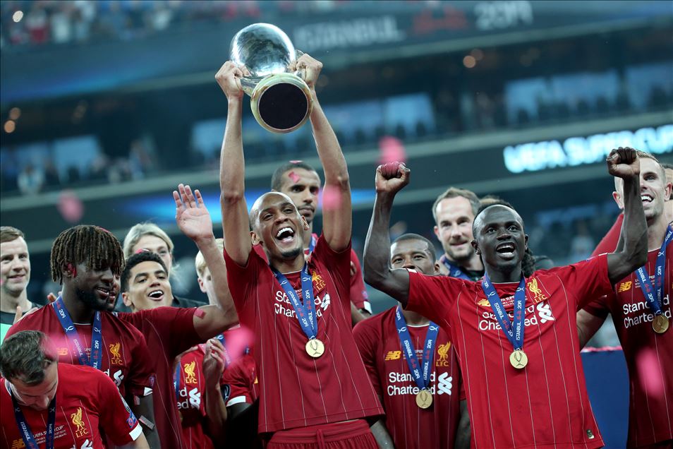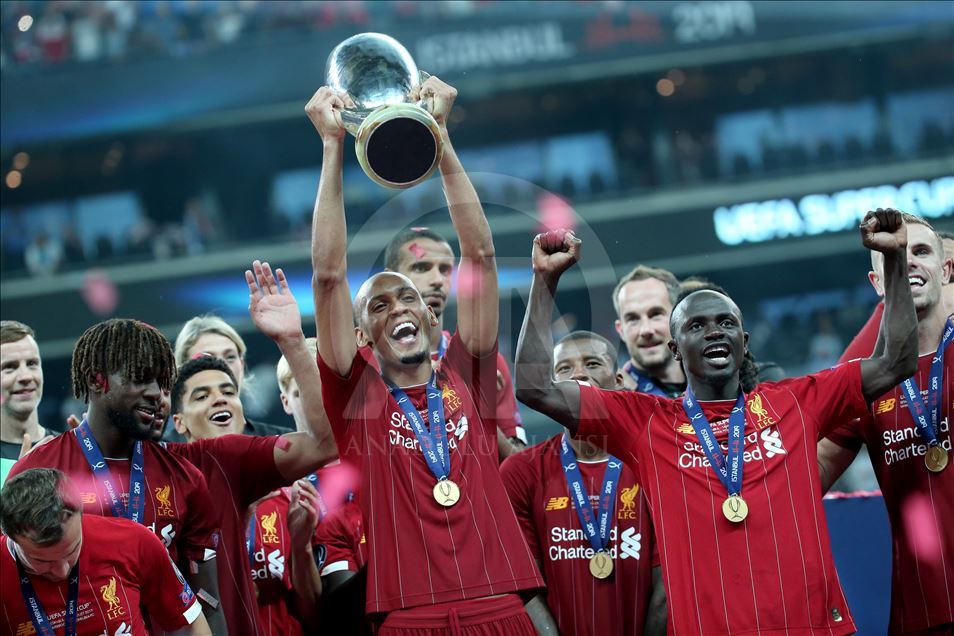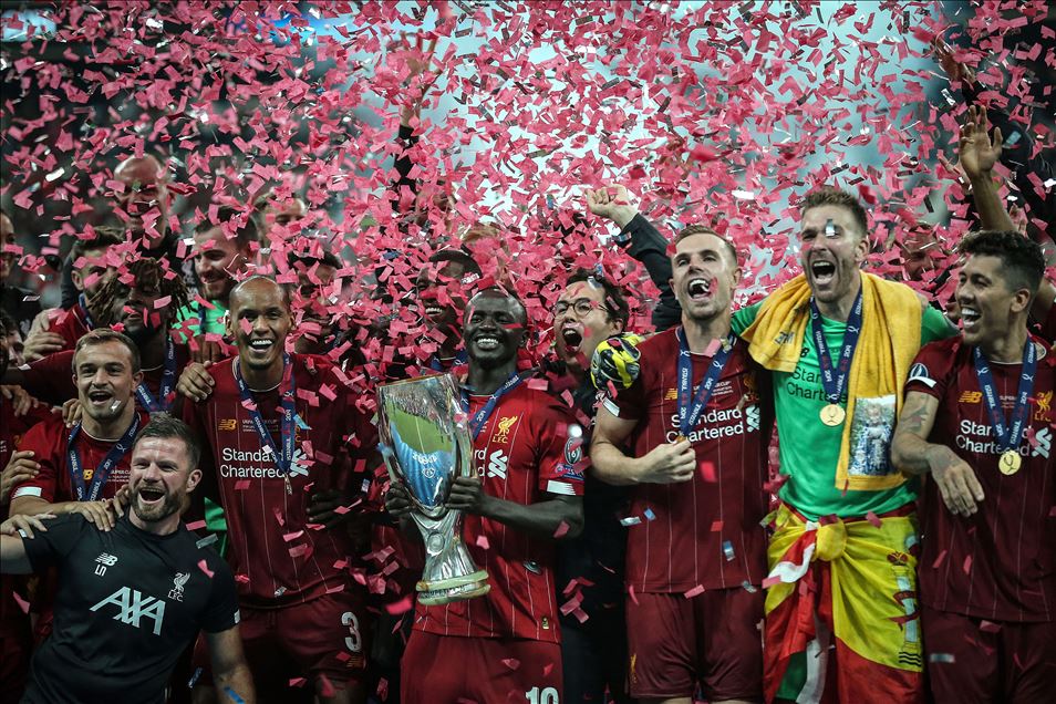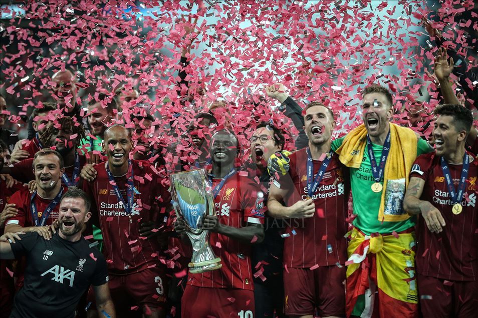 UEFA Süper Kupa maçında Liverpool ile Chelsea, Vodafone Park’ta karşılaştı. Liverpool’un golünü atan Sadio Mane (sol 2), sevincini takım arkadaşlarıyla paylaştı. ( Şebnem Coşkun - Anadolu Ajansı )Şebnem Coşkun