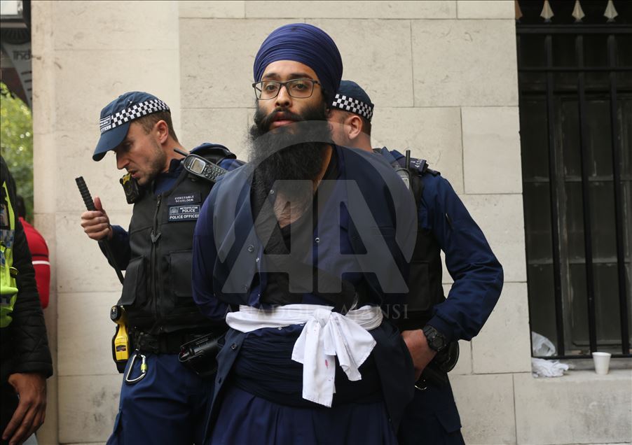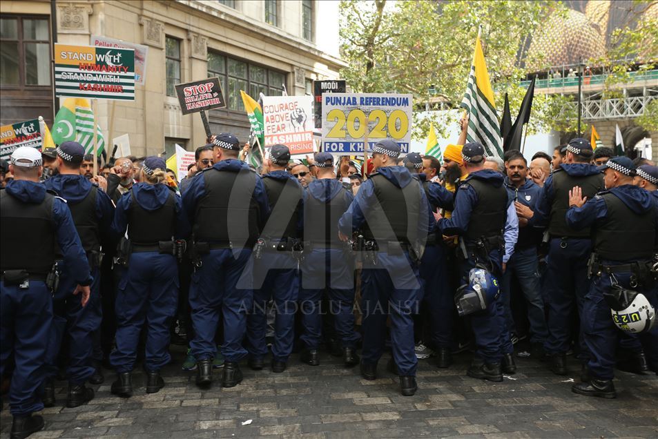 Hindistan'ın Cammu Keşmir'in özel statüsünü kaldırması İngiltere'nin başkenti Londra'daki Hindistan Yüksek Komisyonu önünde binlerce kişinin katıldığı gösteriyle protesto edildi. Polis bazı göstericileri gözaltına aldı. ( Isabel Infantes - Anadolu Ajansı )Isabel Infantes