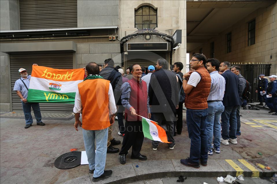 Hindistan'ın Cammu Keşmir'in özel statüsünü kaldırması İngiltere'nin başkenti Londra'da binlerce kişinin katıldığı gösteriyle protesto edildi. Hindistan Yüksek Komisyonu önünde toplanan binlerce gösterici ellerinde "Özgür Keşmir, Keşmir yanıyor, Hindistan ordusu Keşmir'den çık, Modi, savaş değil, çay yap" yazılı dövizler ile Pakistan ve Keşmir bayrakları taşıdı. Hindistan Yüksek Komisyonu önündeki eski Hindistan başbakanı Cevahirlal Nehru'nun heykeline göstericiler tarafından yumurta atıldı. ( Isabel Infantes - Anadolu Ajansı )Isabel Infantes