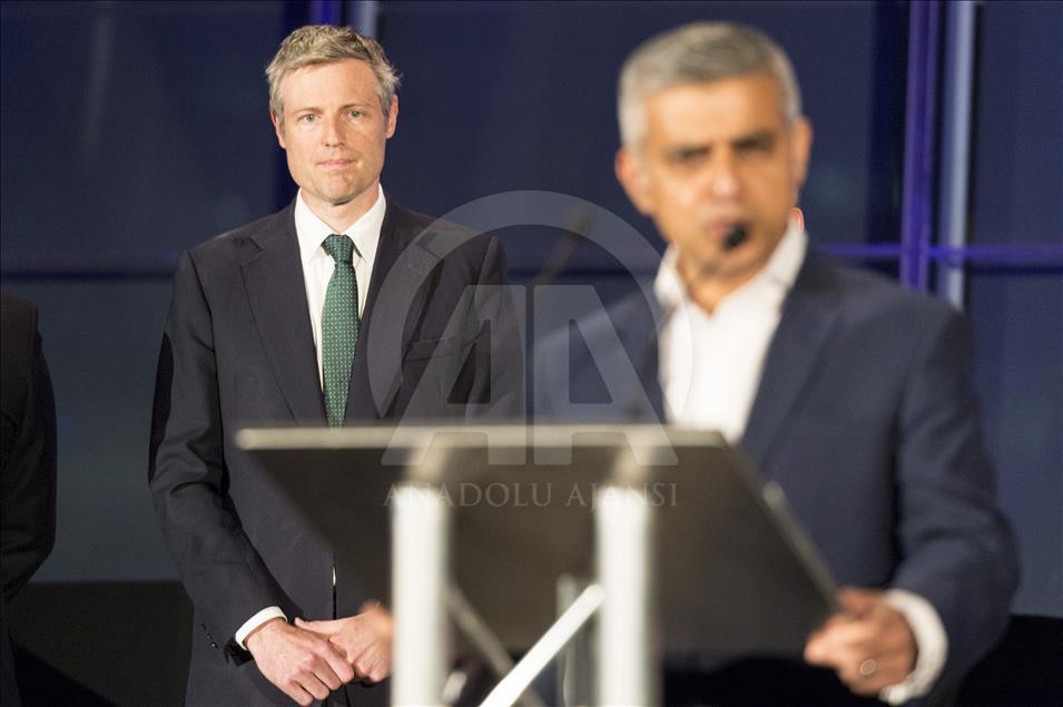 İngiltere'nin başkenti Londra'da yapılan belediye başkanlığı seçimini İşçi Partisi'nin adayı Sadık Khan (fotoğrafta) kazandı. Muhafazakar Parti'nin adayı Zac Goldsmith (fotoğrafta) arasında geçen yarışta, 1 milyon 310 bin 143 seçmenin oyunu alan Sadık Khan, Londra'nın yeni belediye başkanı oldu. Muhafazakar Parti adayı Goldsmith sonuçların açıklanmasından sonra bir konuşma yaptı. ( Ray Tang - Anadolu Ajansı )Ray Tang