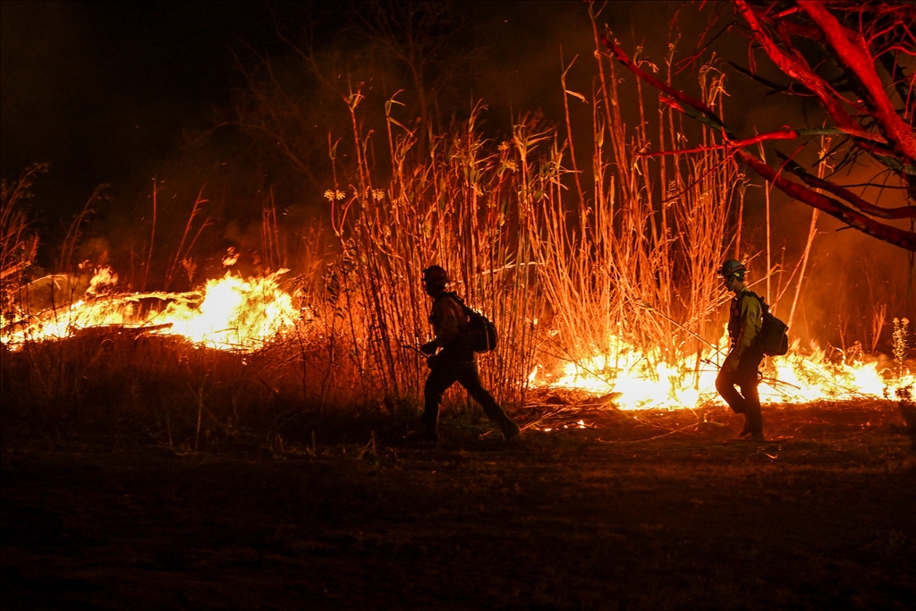 ABD'nin California eyaletinin Ventura kentinde itfaiye ekipleri şiddetli rüzgarın etkisiyle yaşam alanlarına yaklaşan orman yangınına müdahale etti.