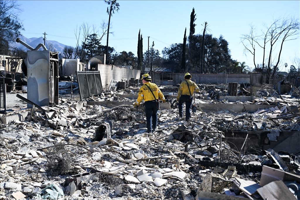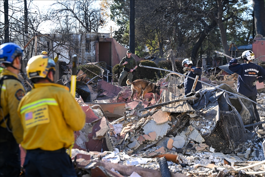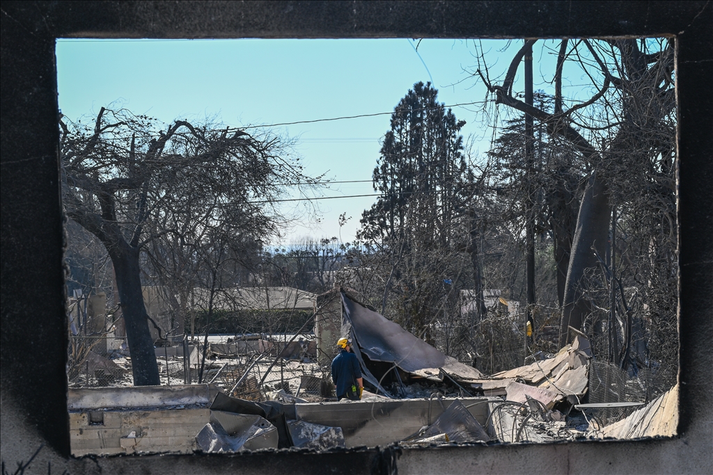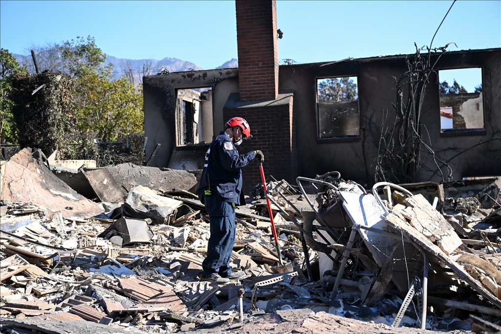 Los Angeles kentini etkisi altına alarak yerleşim alanlarına ciddi zarar veren orman yangınının ardından, arama ve kurtarma ekipleri Altadena bölgesinde yanan evlerin külleri arasında olası ceset kalıntıları arıyor. (Tayfun Coşkun - Anadolu Ajansı)Tayfun Coşkun