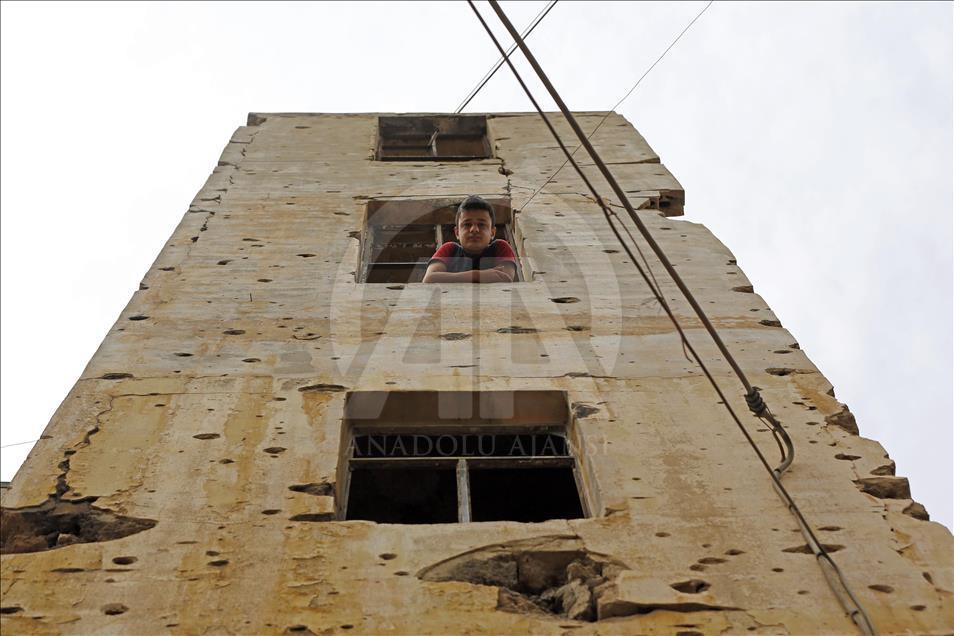 Lübnan'ın başkenti Beyrut'ta üzerinden 41 yıl geçmesine rağmen iç savaşın izlerini taşıyan binalar, yaşanan olayların ciddiyetini gözler önüne seriyor. Yüz elli binden fazla kişinin ölümüne yol açan kanlı iç savaş sırasında hasar gören binalar, kurşun delikleri ve bombaların açtığı gedikler ile savaşın izlerini taşıyor. Ağır hasar gören bazı evlerde konaklayan Lübnanlılar, yaşamlarına kaldığı yerden devam ediyor. ( Ratib Al Safadi - Anadolu Ajansı )Ratib Al Safadi