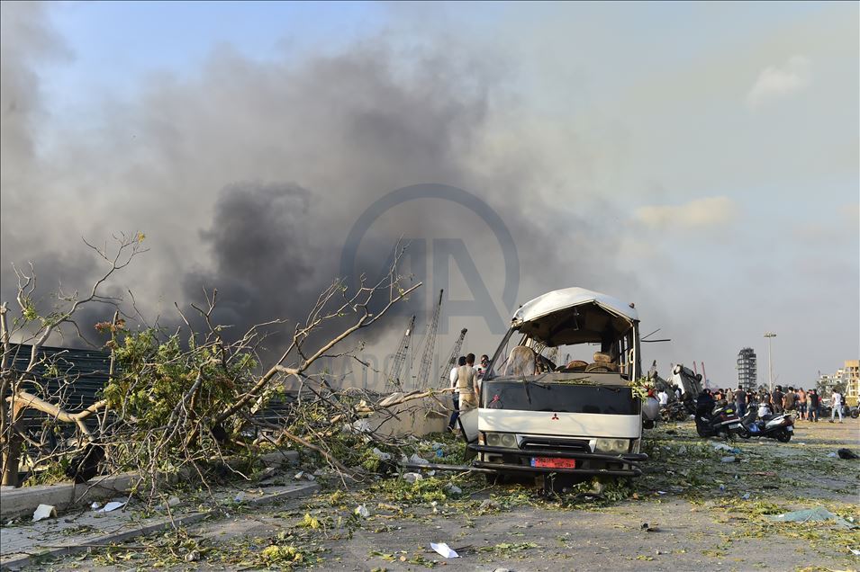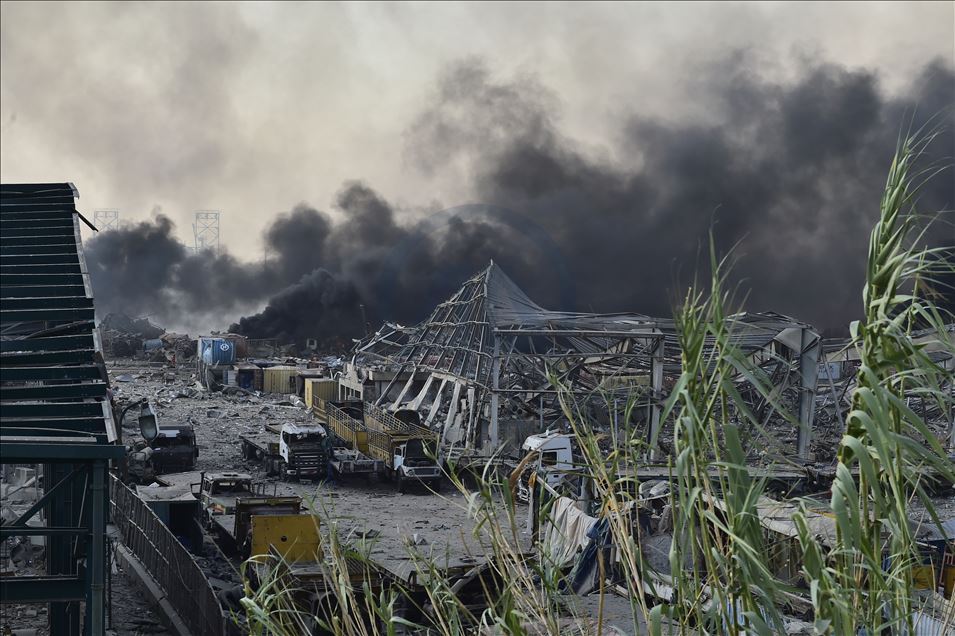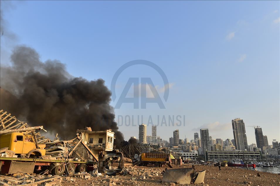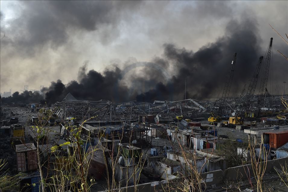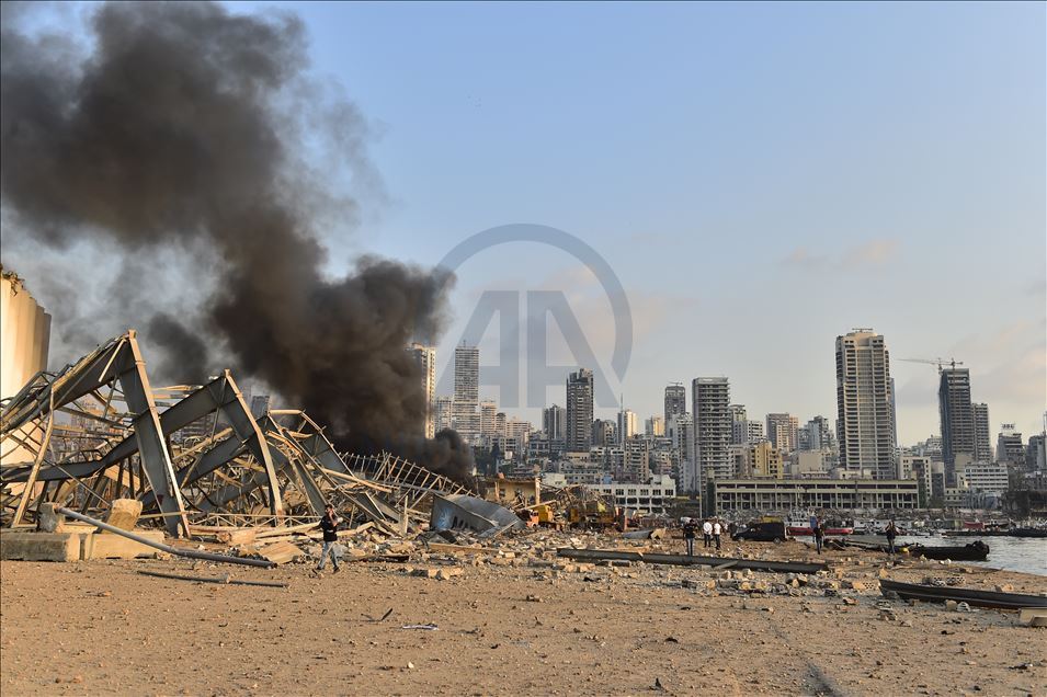 Lübnan'daki Beyrut Limanında büyük bir patlama meydana geldi. Patlamanın etkisiyle limanda yangın çıktı ve çevredeki birçok binada hasar oluştu. ( Houssam Shbaro - Anadolu Ajansı )Houssam Shbaro