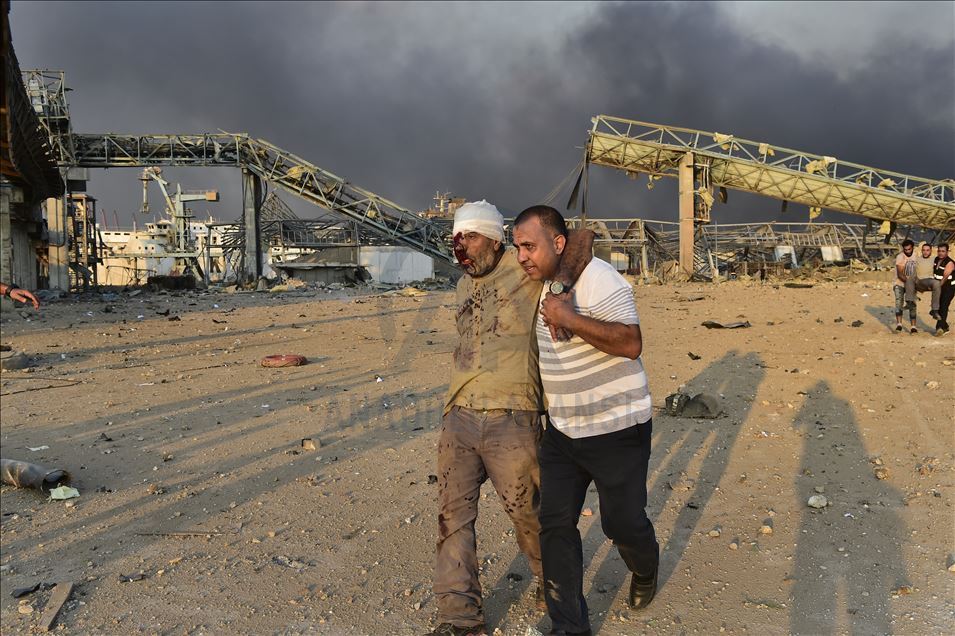 Lübnan'daki Beyrut Limanında büyük bir patlama meydana geldi. Patlamanın etkisiyle çevrede bulunan çok sayıda vatandaşlar yaralandı. ( Houssam Shbaro - Anadolu Ajansı )Houssam Shbaro