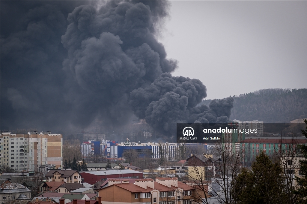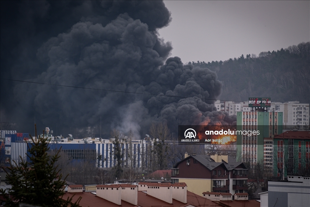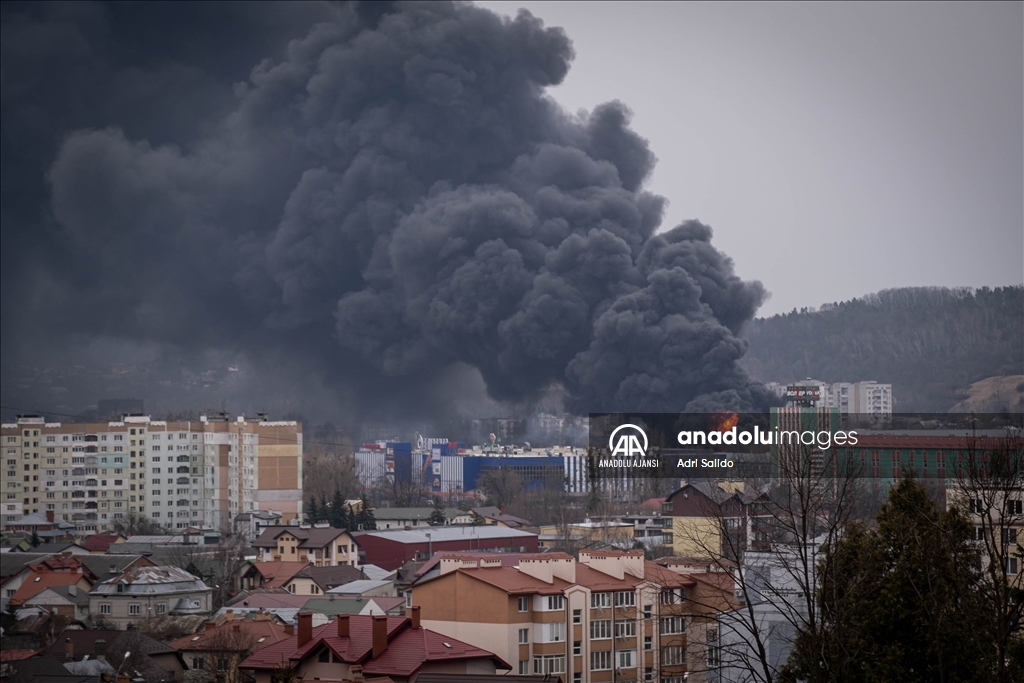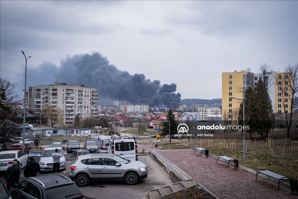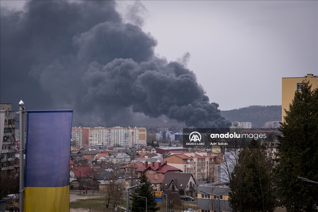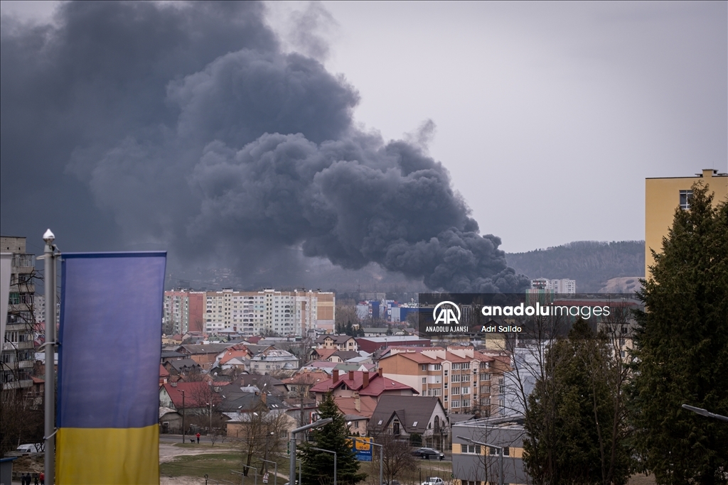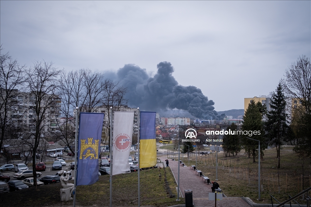 Rusya'nın saldırıları altındaki Ukrayna'nın Lviv kentinde, saldırılar sonucu bir bölgeden dumanlar yükseldi.