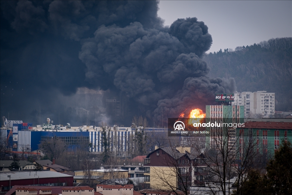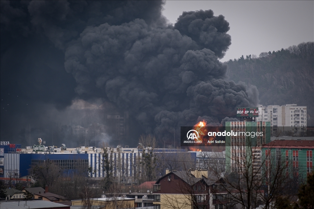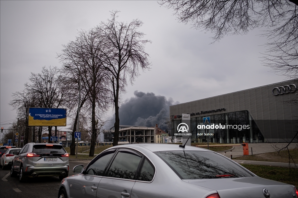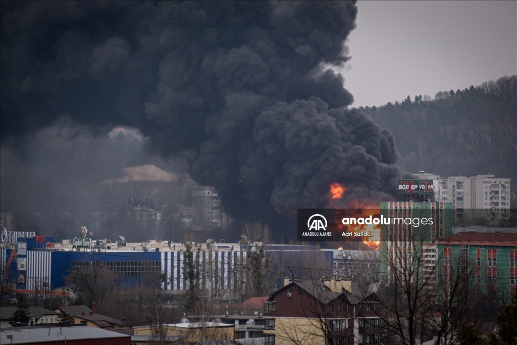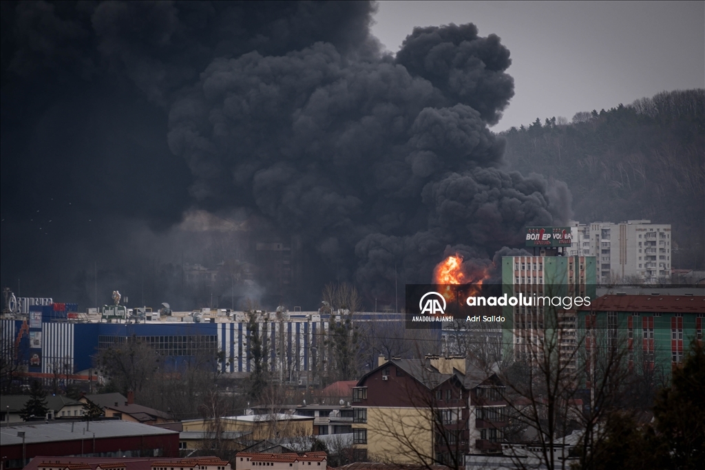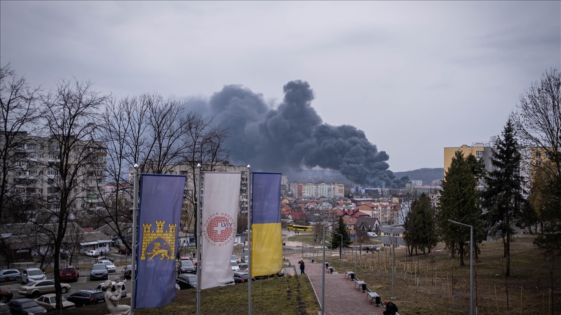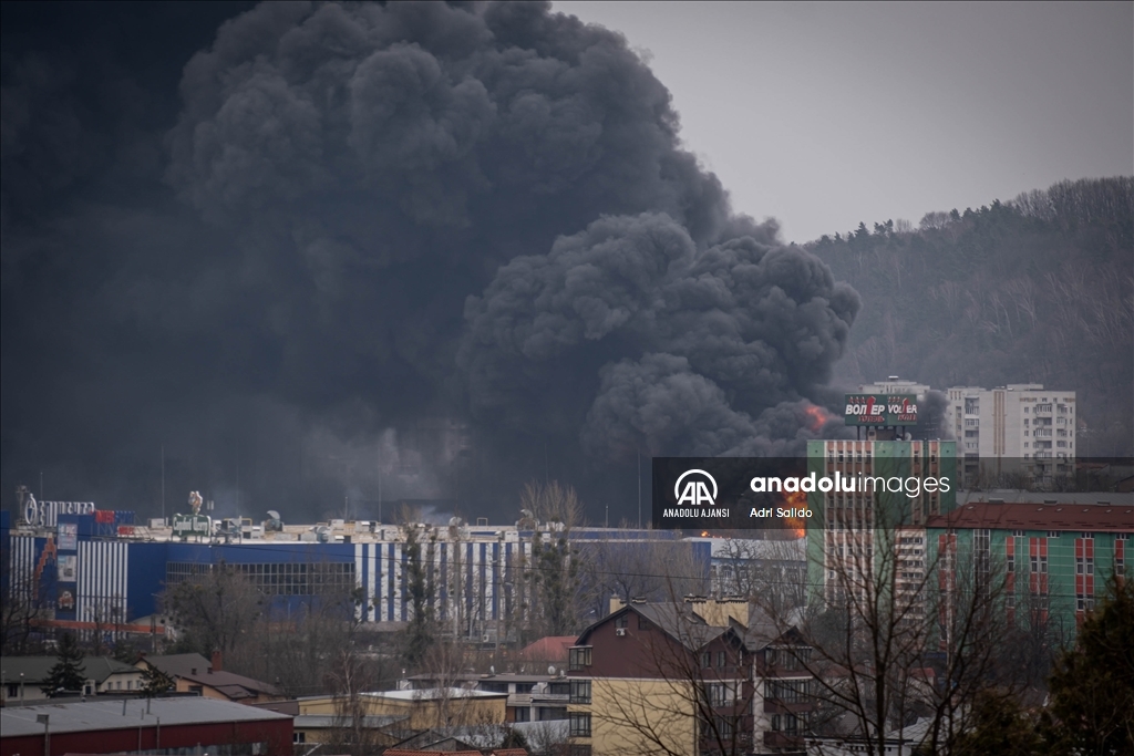 Rusya'nın saldırıları altındaki Ukrayna'nın Lviv kentinde, saldırılar sonucu bir bölgeden dumanlar yükseldi.
