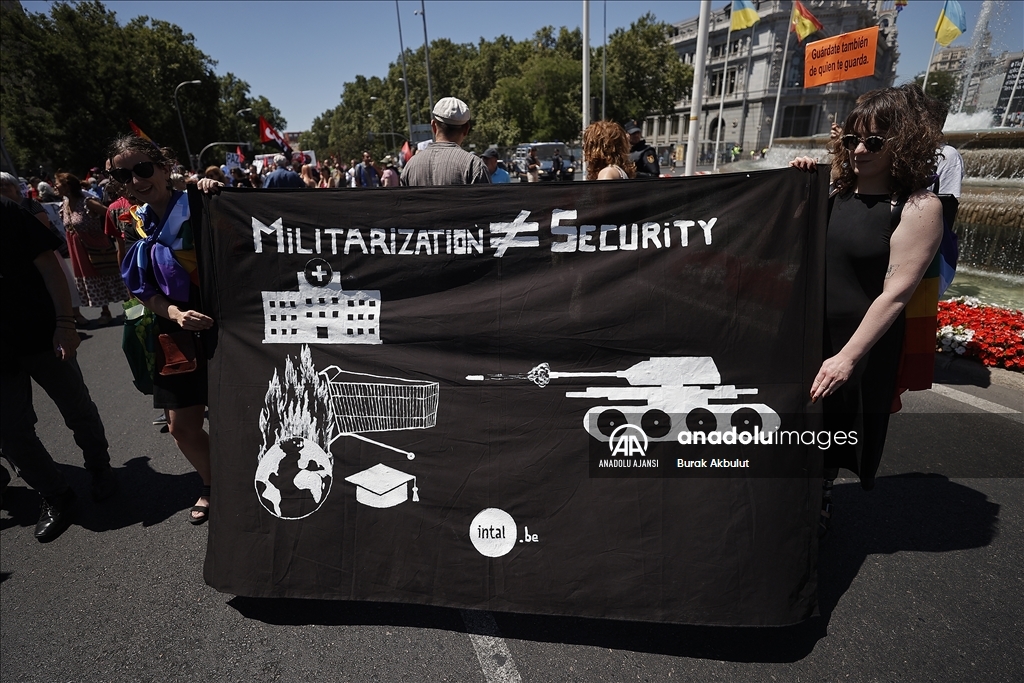 NATO'nun 28-30 Haziran'daki zirvesine ev sahipliği yapan İspanya'nın başkenti Madrid'de binlerce kişi NATO karşıtı gösteri düzenledi. İspanya'daki sol ve komünist görüşlü sivil toplum kuruluşlarının (STK) çağrısıyla organize edilen "Barış için: NATO'ya hayır" başlıklı gösteriye, koalisyon hükümetinin küçük ortağı Unidas Podemos ittifakına bağlı Birleşik Sol (IU) ve Podemos partilerinin temsilcileri de destek verdi.