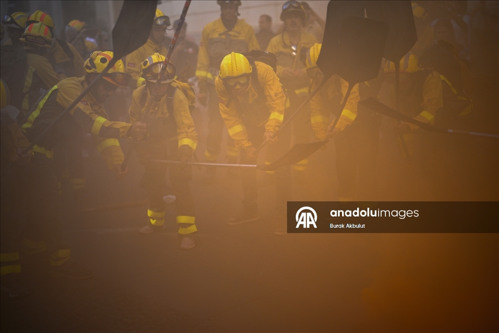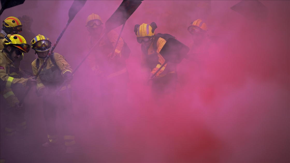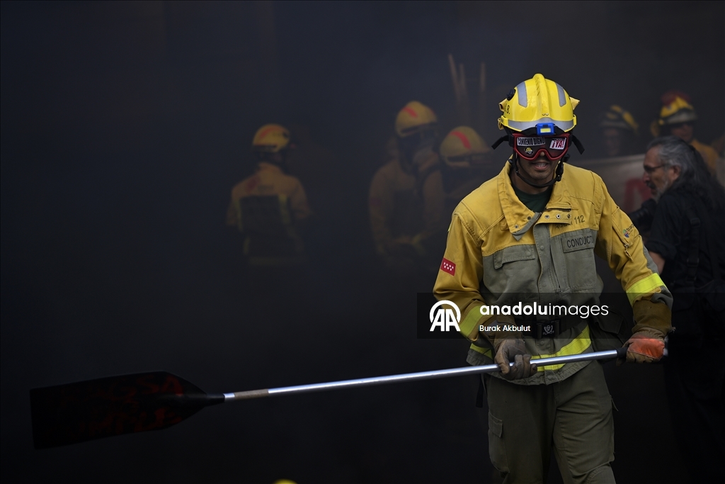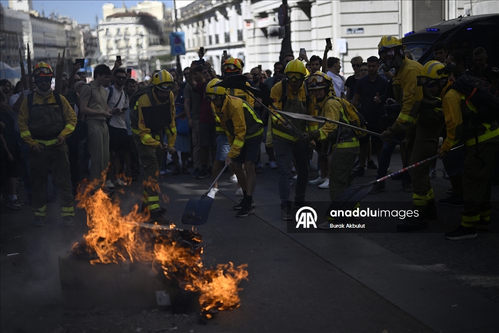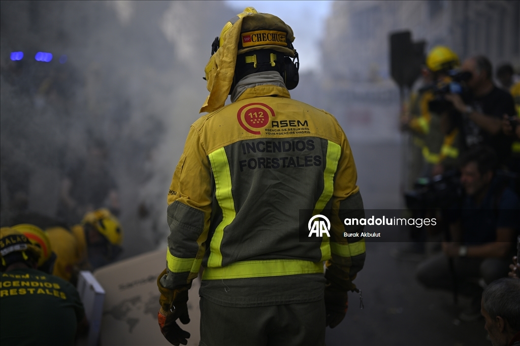 Madrid'de süresiz grevde olan orman itfaiyecileri gösteri yaptı