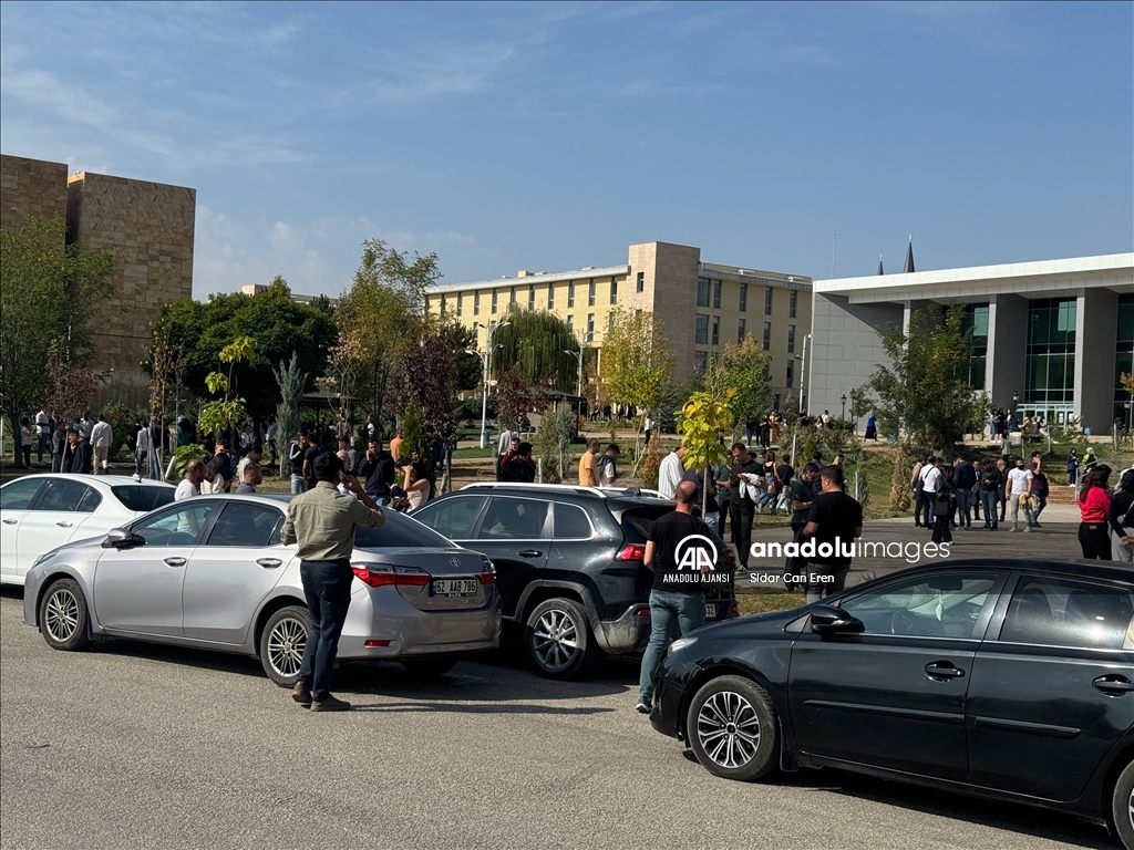 Depremin hissedildiği Tunceli'deki Munzur Üniversitesi'nde öğrenciler binaları boşaltarak bahçeye çıktı. (Sidar Can Eren - Anadolu Ajansı)Sidar Can Eren