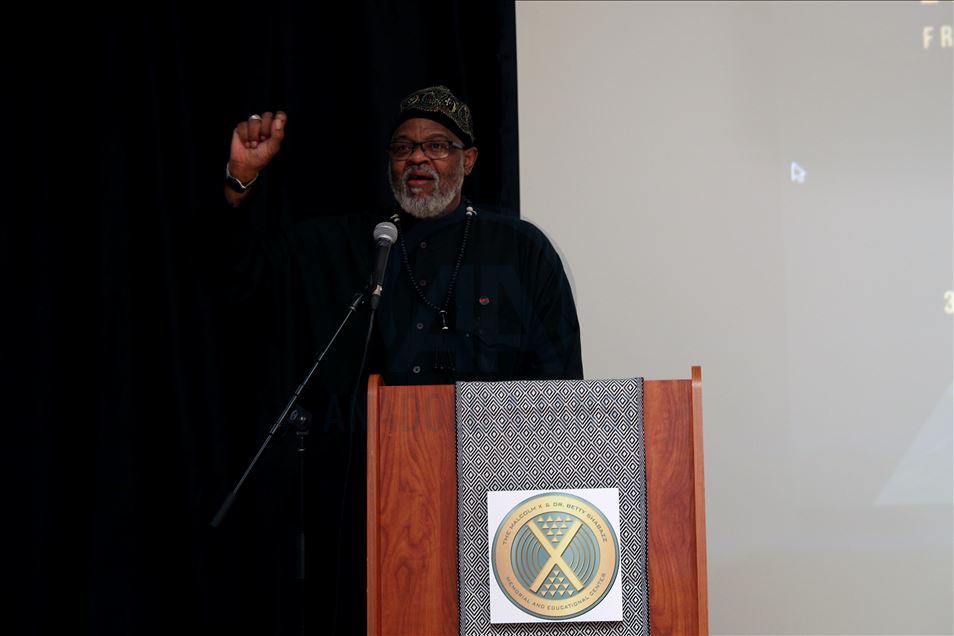 Malcom X'in ölümünün 55. yılı nedeniyle anma programına katılan sevenleri, New York'un Harlem bölgesinde yer alan ve aynı zamanda suikastın düzenlendiği yer olarak hafızalara kazınan Malcolm X & Dr. Betty Shabazz Anıtı ve Eğitim Merkezi'nde buluştu. Imam Al-Hajj Talib (fotoğrafta) etkinlikte konuşma ve dua yaptı. ( Tayfun Coşkun - Anadolu Ajansı )Tayfun Coşkun