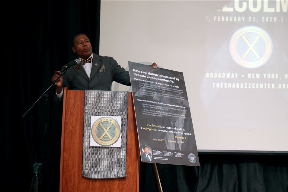 Malcom X'in ölümünün 55. yılı nedeniyle anma programına katılan sevenleri, New York'un Harlem bölgesinde yer alan ve aynı zamanda suikastın düzenlendiği yer olarak hafızalara kazınan Malcolm X & Dr. Betty Shabazz Anıtı ve Eğitim Merkezi'nde buluştu. New York senatörü James Sanders Jr. (fotoğrafta) konuşma yaptı. ( Tayfun Coşkun - Anadolu Ajansı )Tayfun Coşkun