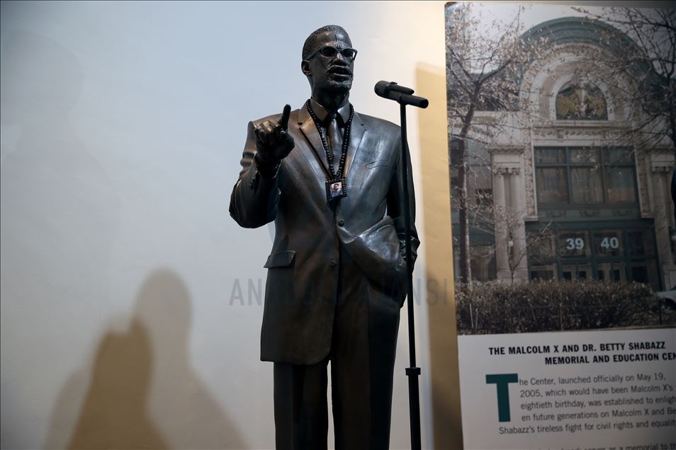 Malcom X'in ölümünün 55. yılı nedeniyle anma programına katılan sevenleri, New York'un Harlem bölgesinde yer alan ve aynı zamanda suikastın düzenlendiği yer olarak hafızalara kazınan Malcolm X & Dr. Betty Shabazz Anıtı ve Eğitim Merkezi'nde buluştu. ( Tayfun Coşkun - Anadolu Ajansı )Tayfun Coşkun