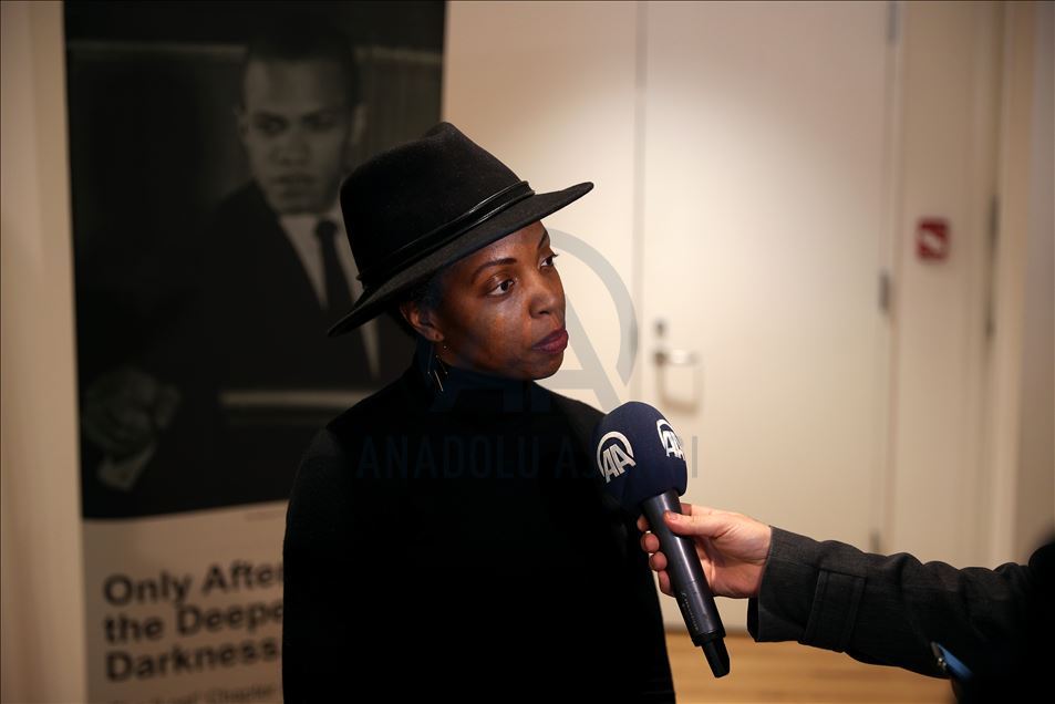 Malcom X'in ölümünün 55. yılı nedeniyle belgeselini izlemeye gelen sevenleri New York'un Harlem bölgesinde yer alan Schomburg Center'da buluştu. Schomburg Center Direktörü Novella Ford AA'ya konuştu. ( Tayfun Coşkun - Anadolu Ajansı )Tayfun Coşkun