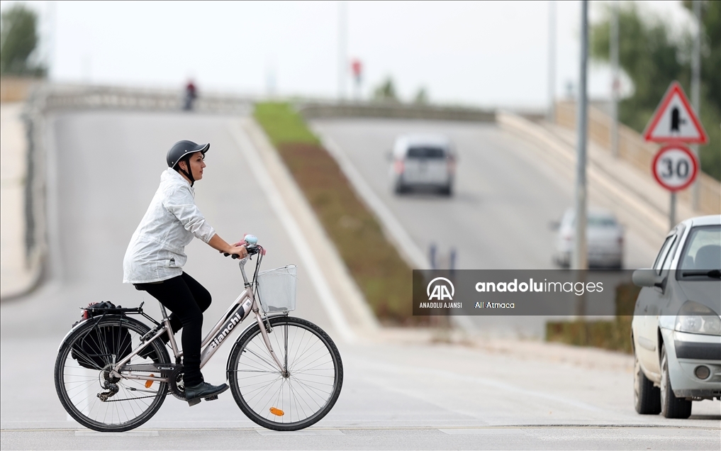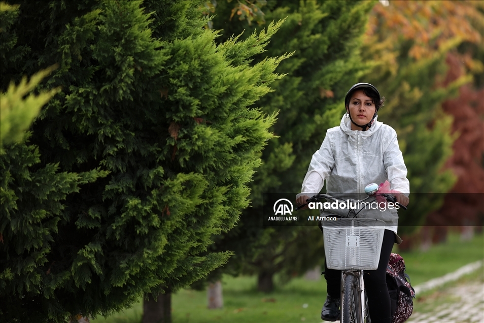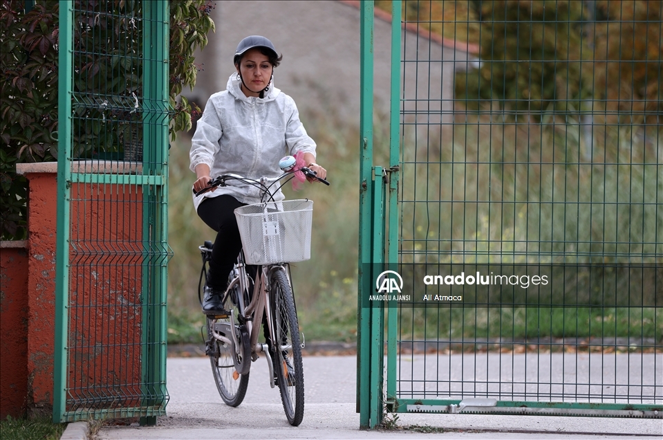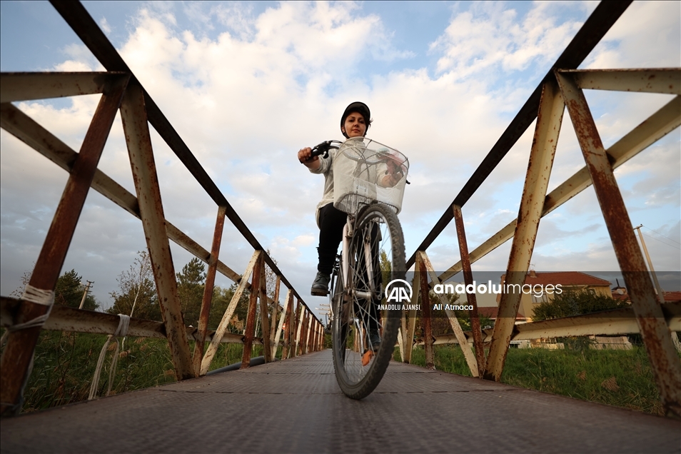 Manolya öğretmen okula gitmek için kilometrelerce pedal çeviriyor