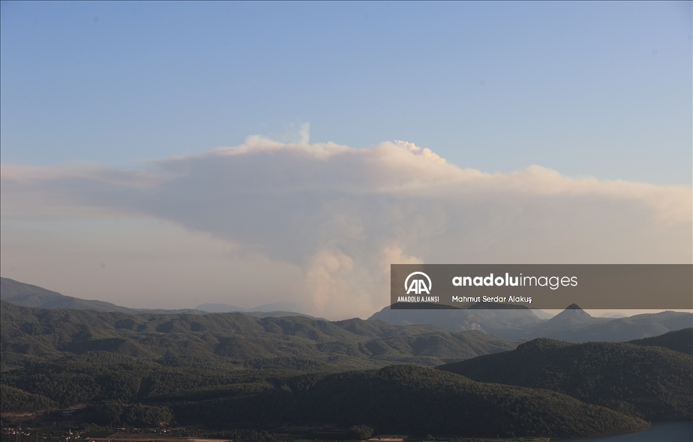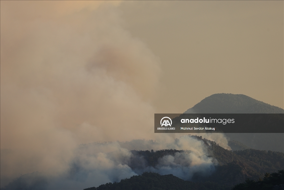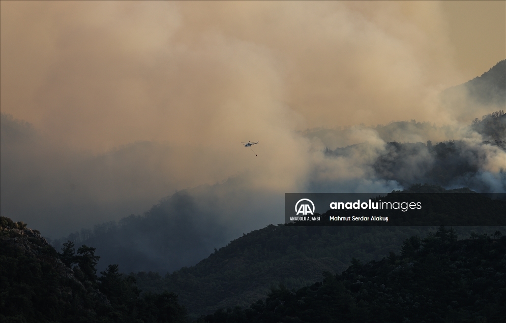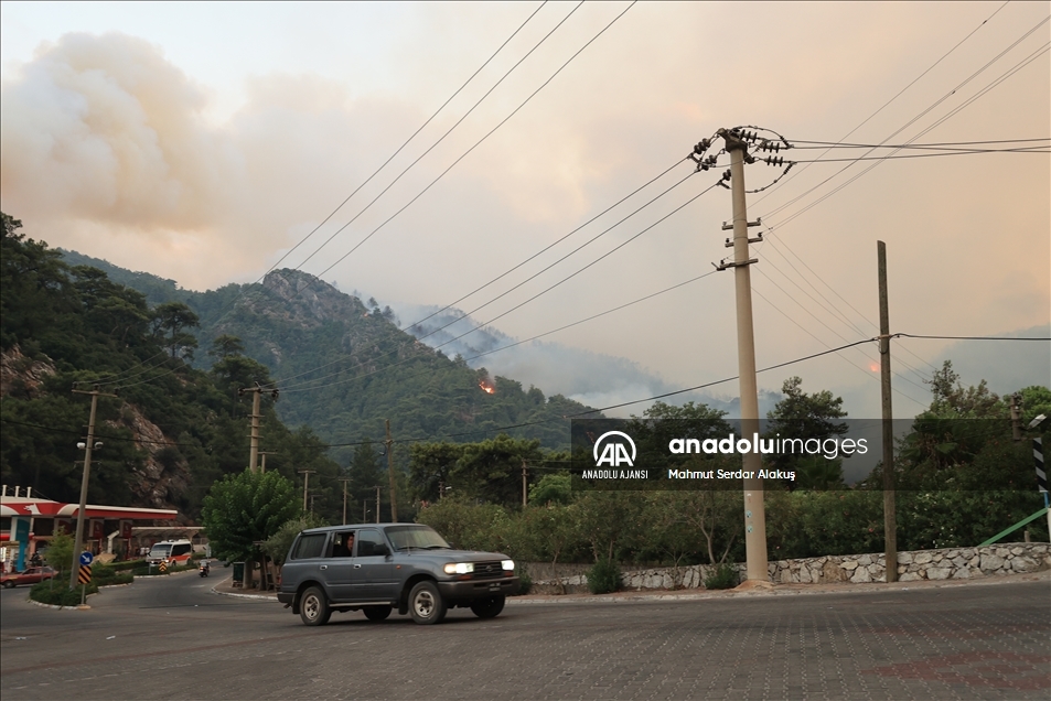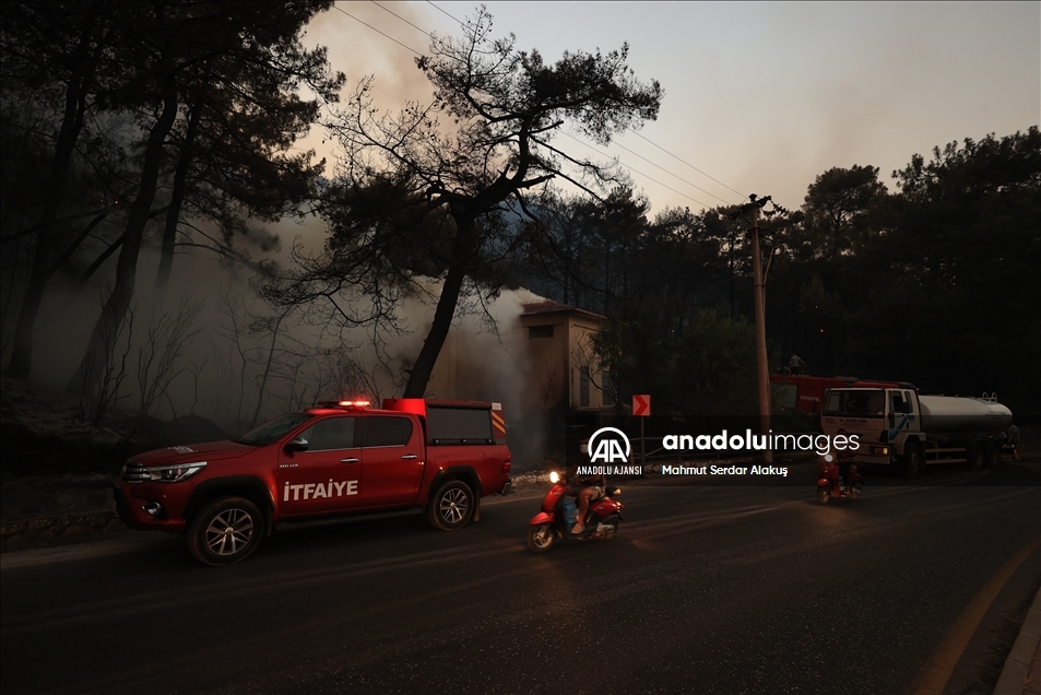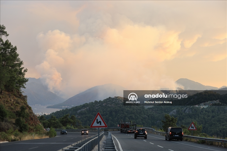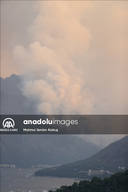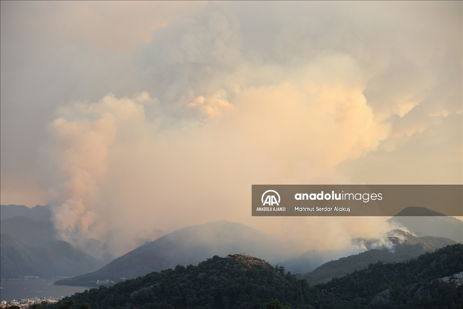 Muğla'nın Marmaris ilçesinde öğlen saatlerinde başlayan orman yangını devam ediyor. Marmaris'in Armutalan mahallesinde başlayan yangın İçmeler mahallesine doğru ilerliyor. Yangına Orman Bölge Müdürlüğü ekipleri, Muğla Büyükşehir Belediyesi ekipleri, emniyet güçleri ile Türk Silahlı Kuvvetleri mensupları müdahale ediyor. Yangın nedeniyle oluşan duman kilometrelerce uzaklaktıktan görülüyor. ( Mahmut Serdar Alakuş - Anadolu Ajansı )Mahmut Serdar Alakuş