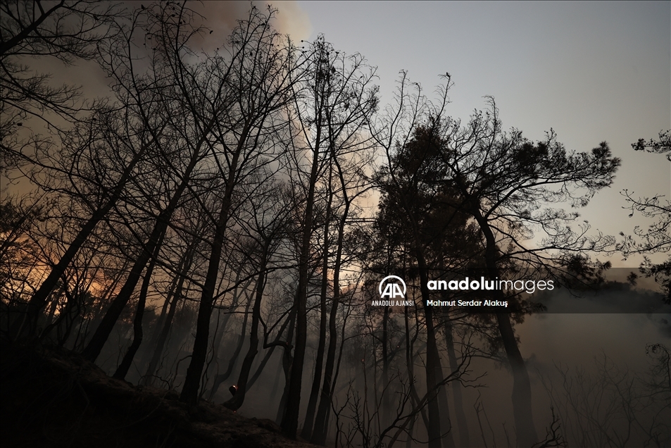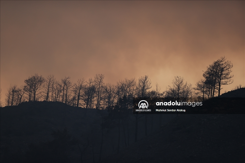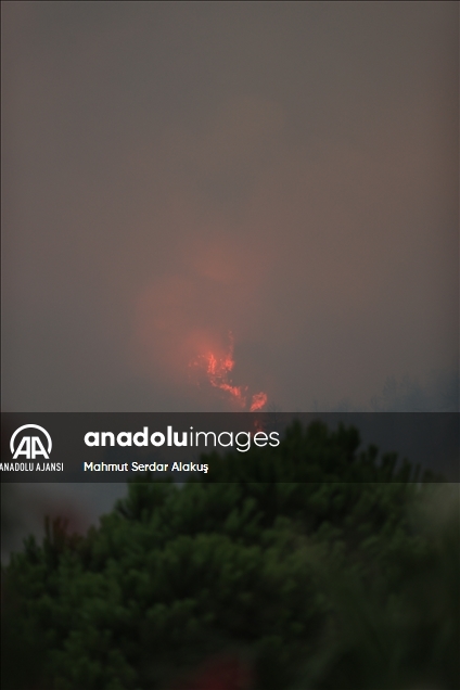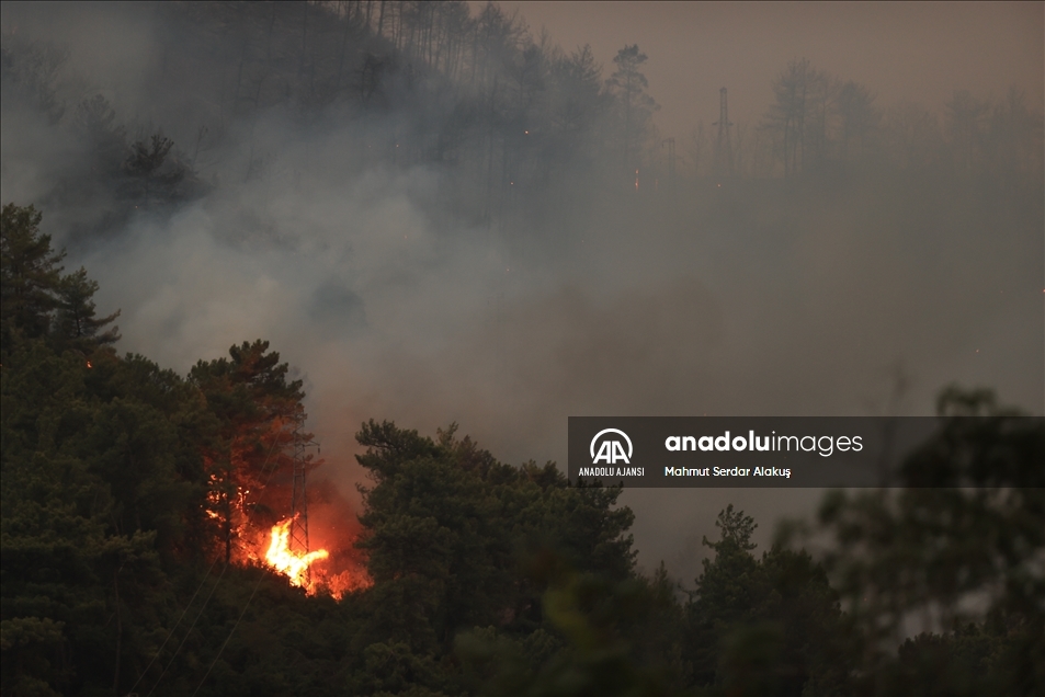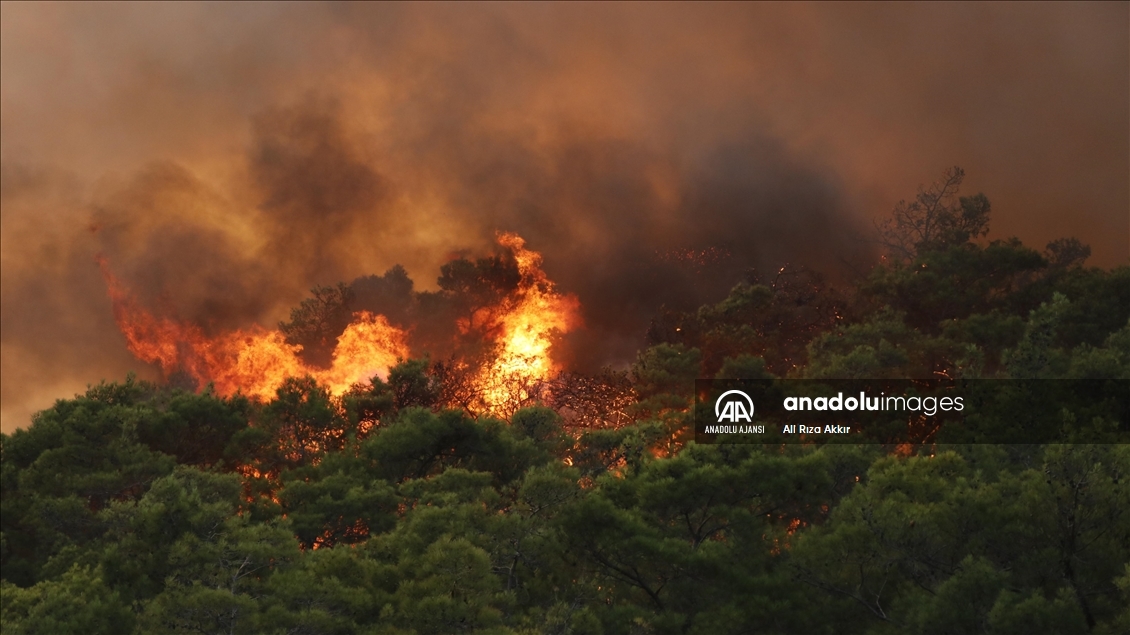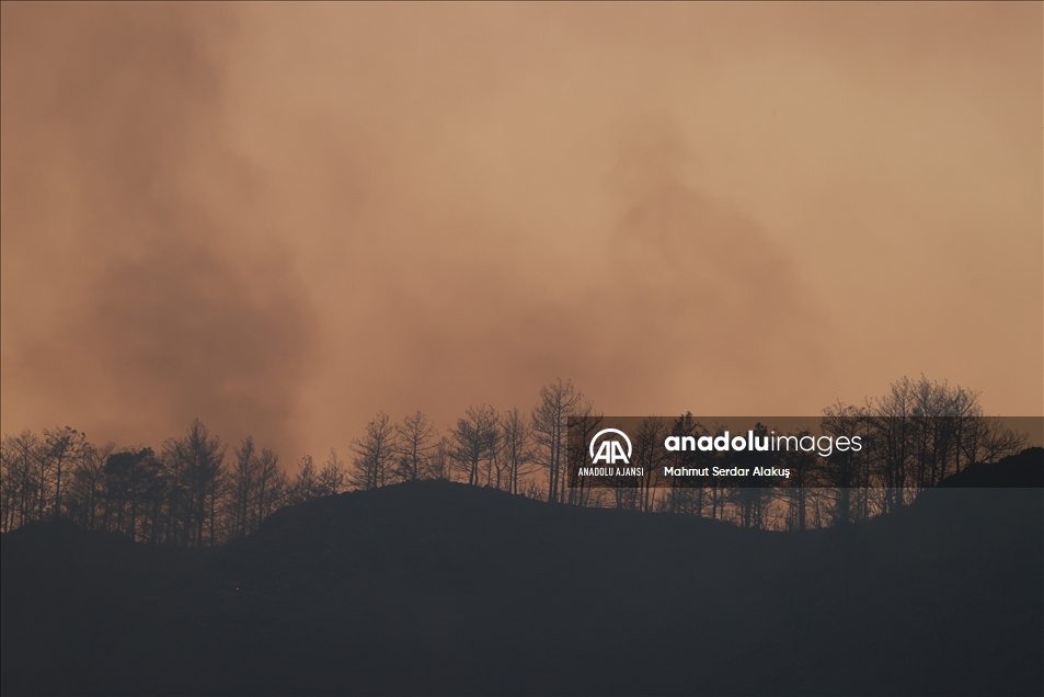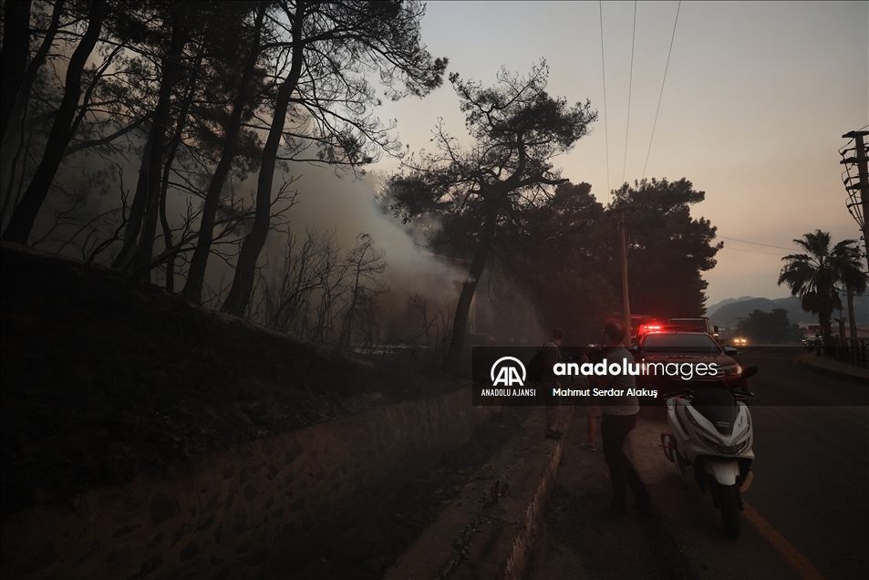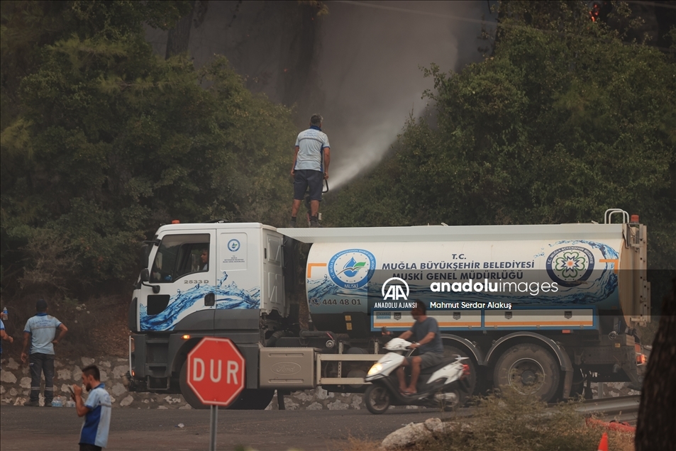 Muğla'nın Marmaris ilçesinde öğlen saatlerinde başlayan orman yangını devam ediyor. Marmaris'in Armutalan mahallesinde başlayan yangın İçmeler mahallesine doğru ilerliyor. Yangına Orman Bölge Müdürlüğü ekipleri, Muğla Büyükşehir Belediyesi ekipleri, emniyet güçleri ile Türk Silahlı Kuvvetleri mensupları müdahale ediyor. Yangın nedeniyle oluşan duman kilometrelerce uzaklaktıktan görülüyor. ( Mahmut Serdar Alakuş - Anadolu Ajansı )Mahmut Serdar Alakuş