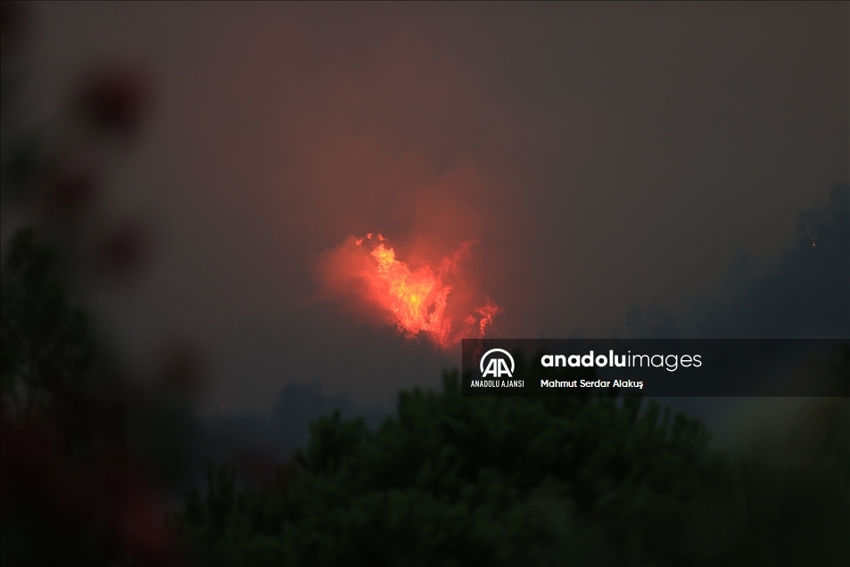 Muğla'nın Marmaris ilçesinde öğlen saatlerinde başlayan orman yangını devam ediyor. Marmaris'in Armutalan mahallesinde başlayan yangın İçmeler mahallesine doğru ilerliyor. Yangına Orman Bölge Müdürlüğü ekipleri, Muğla Büyükşehir Belediyesi ekipleri, emniyet güçleri ile Türk Silahlı Kuvvetleri mensupları müdahale ediyor. ( Mahmut Serdar Alakuş - Anadolu Ajansı )Mahmut Serdar Alakuş