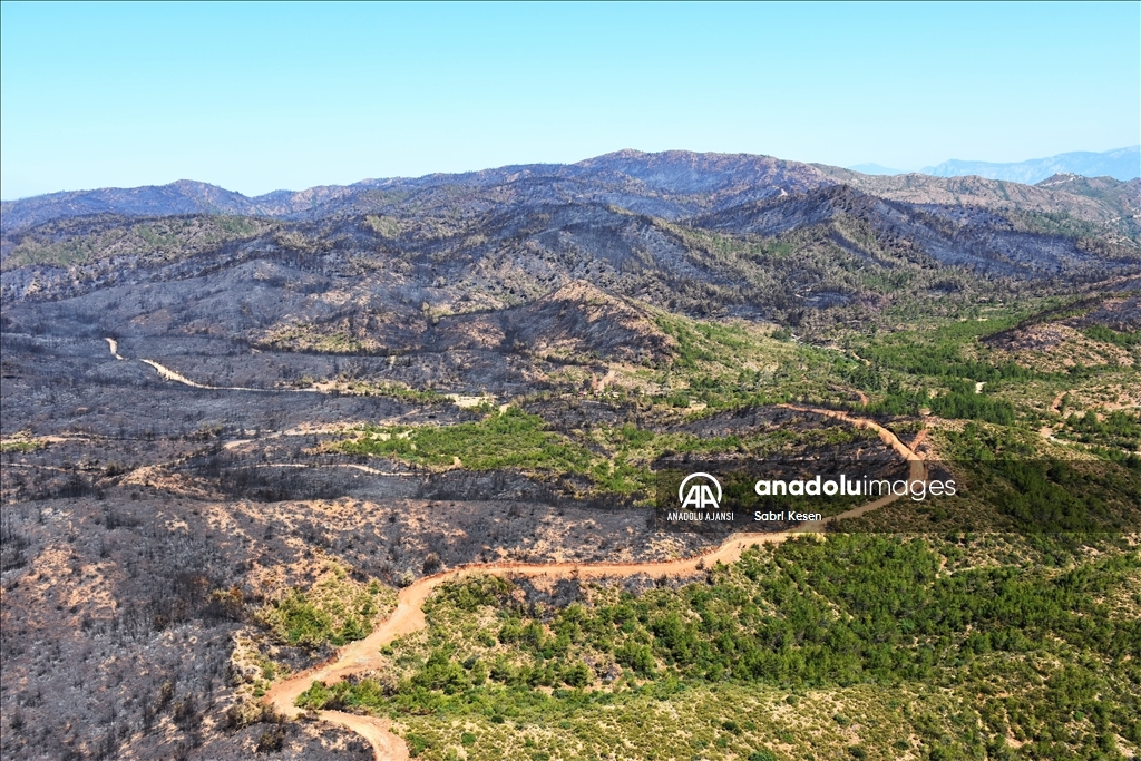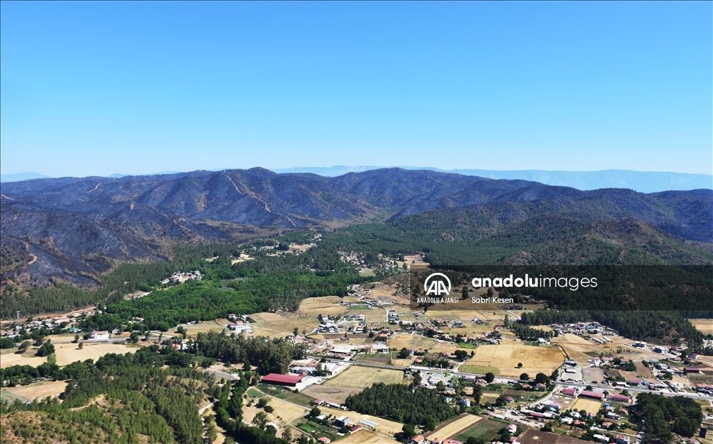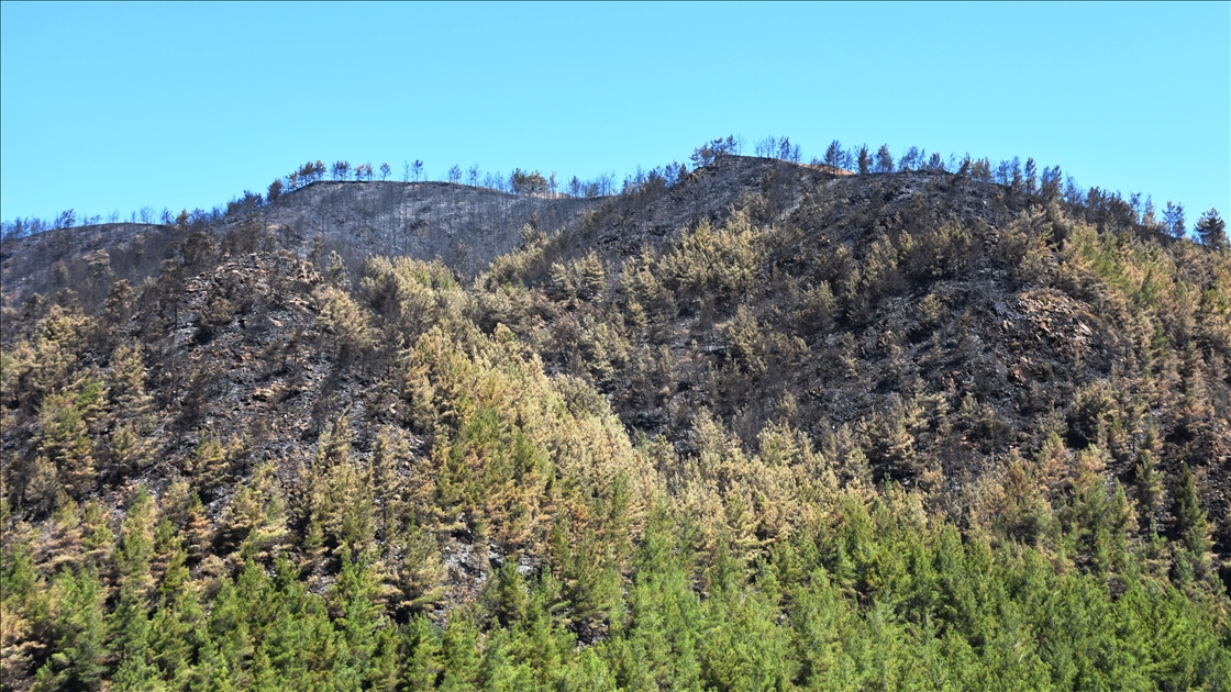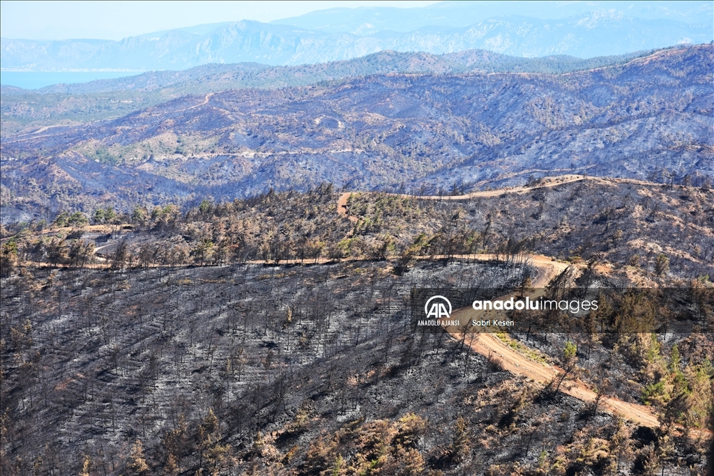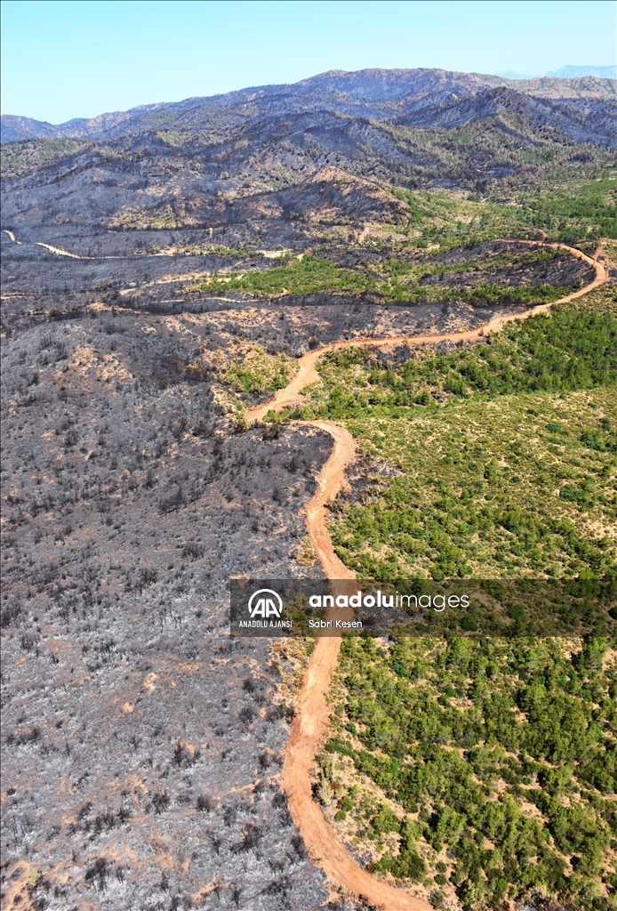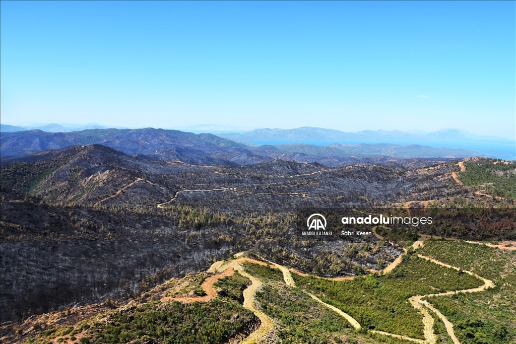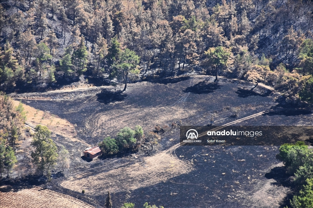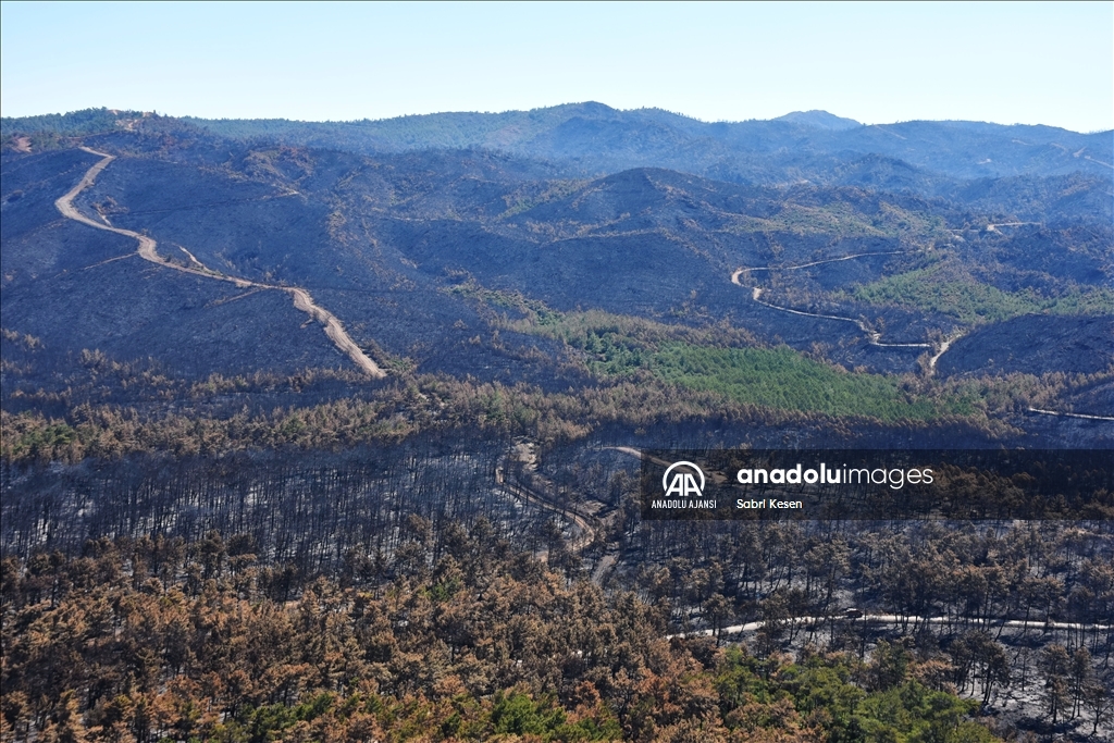 Marmaris ilçesinde 21 Haziran'da başlayan ve kontrol altına alınan orman yangınının bıraktığı izler helikopterle havadan görüntülendi.
