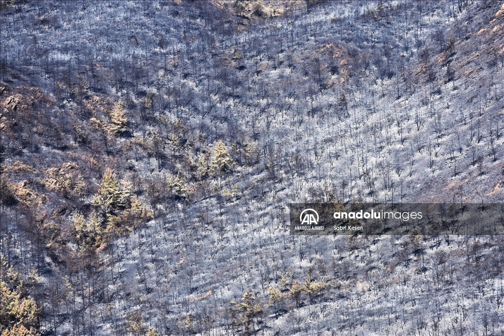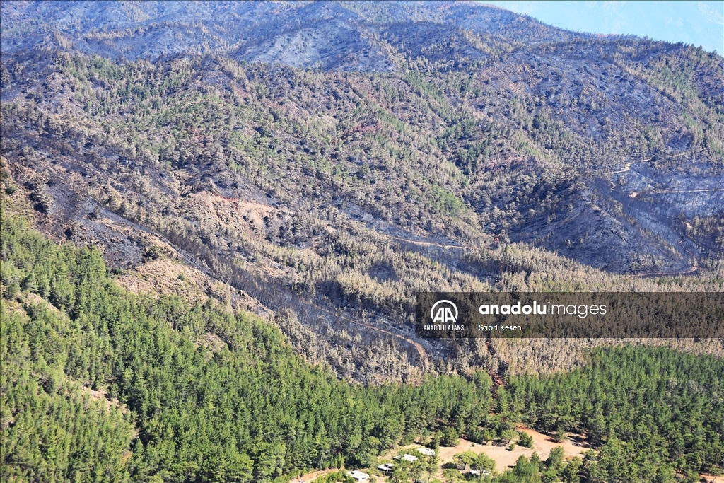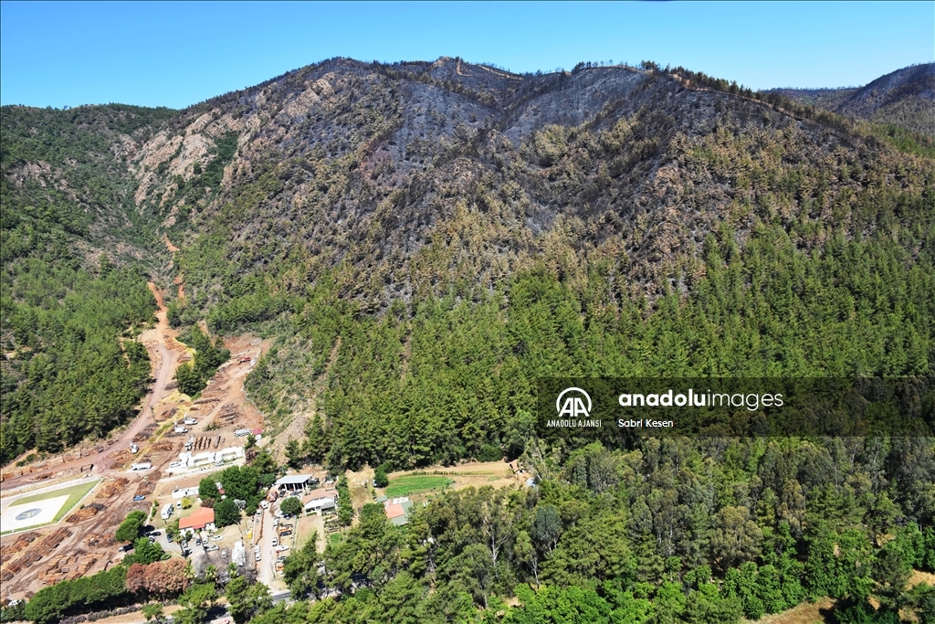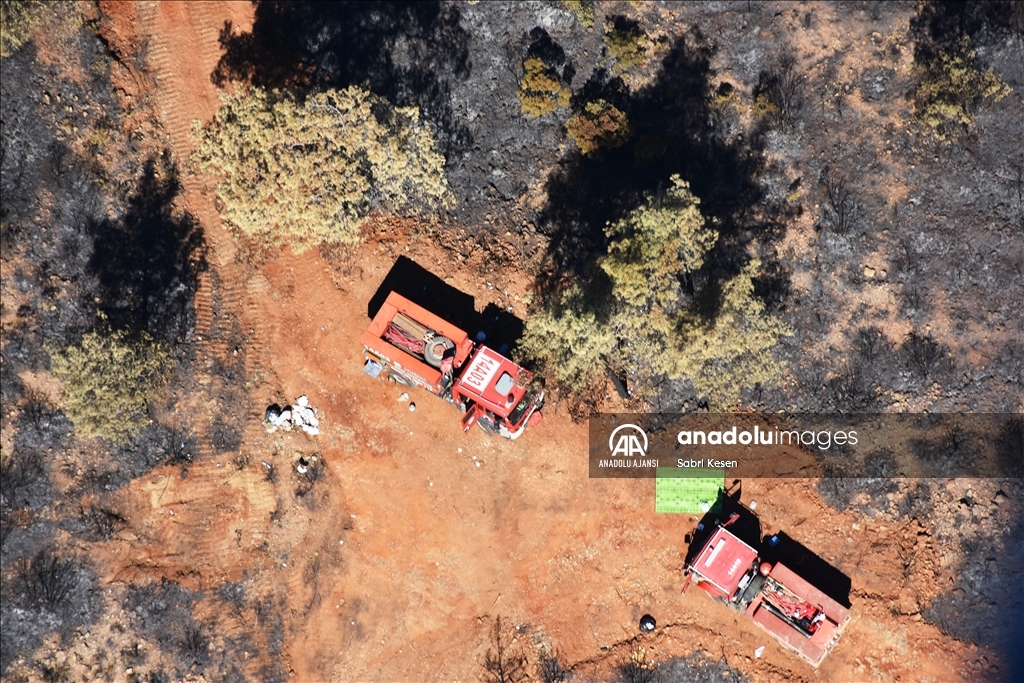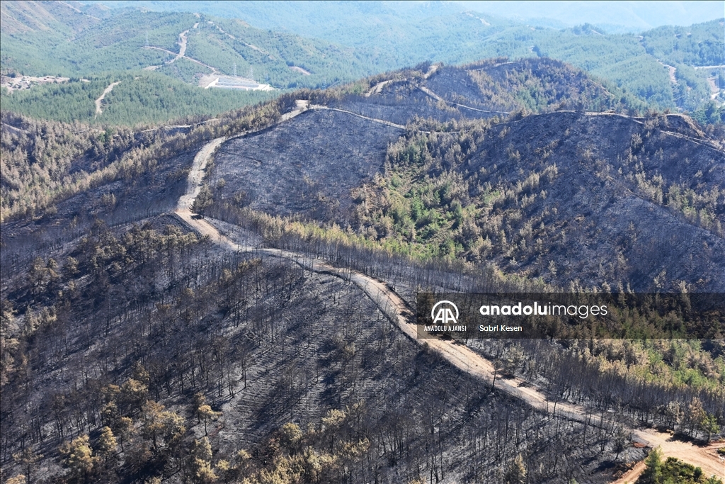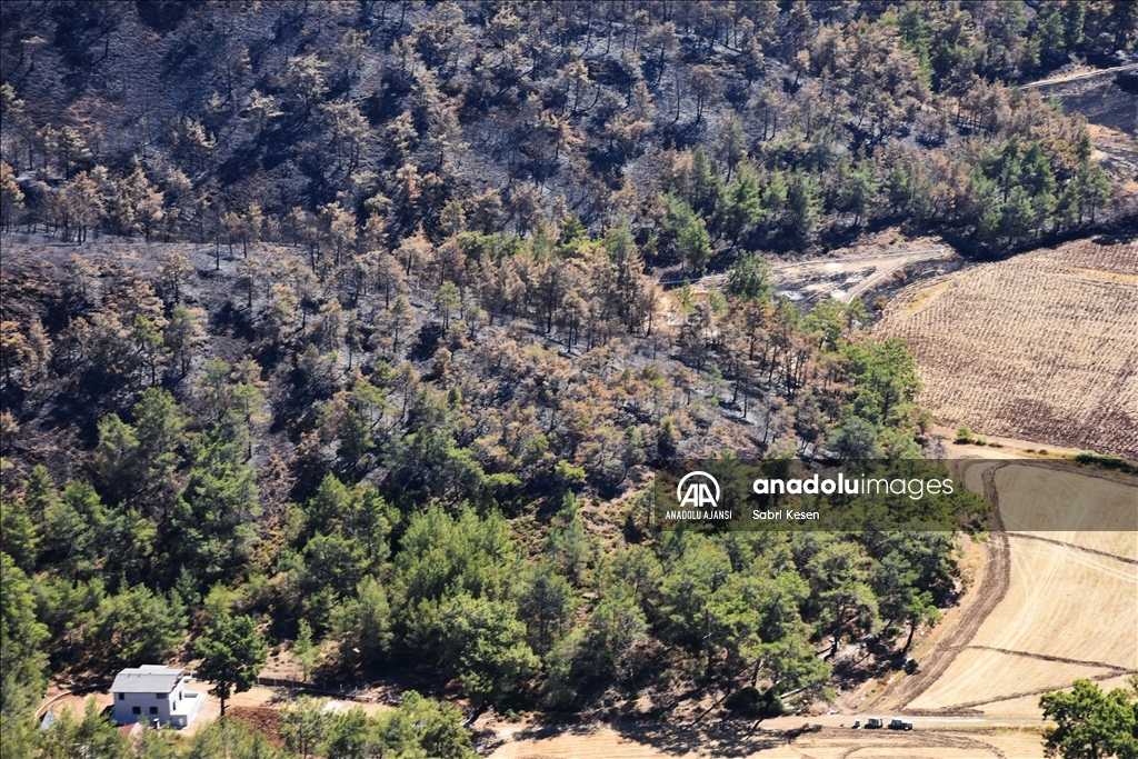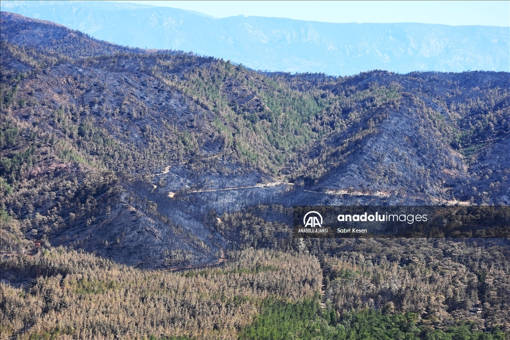 Marmaris ilçesinde 21 Haziran'da başlayan ve kontrol altına alınan orman yangınının bıraktığı izler helikopterle havadan görüntülendi.