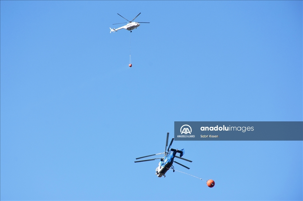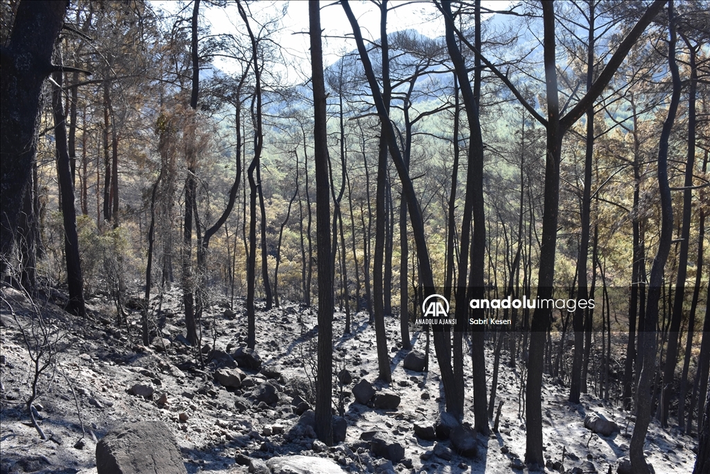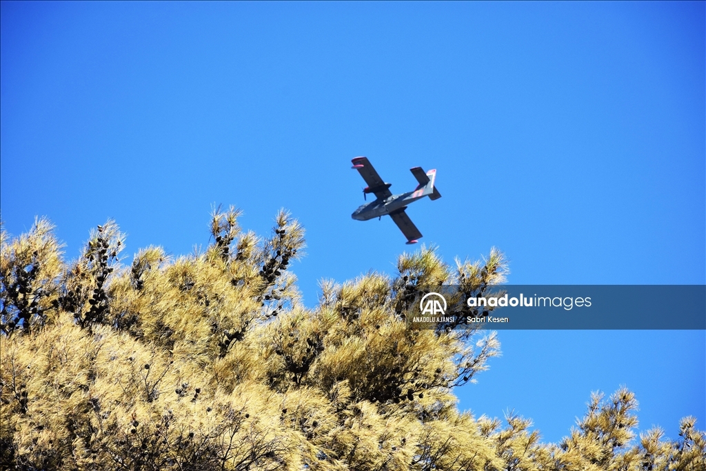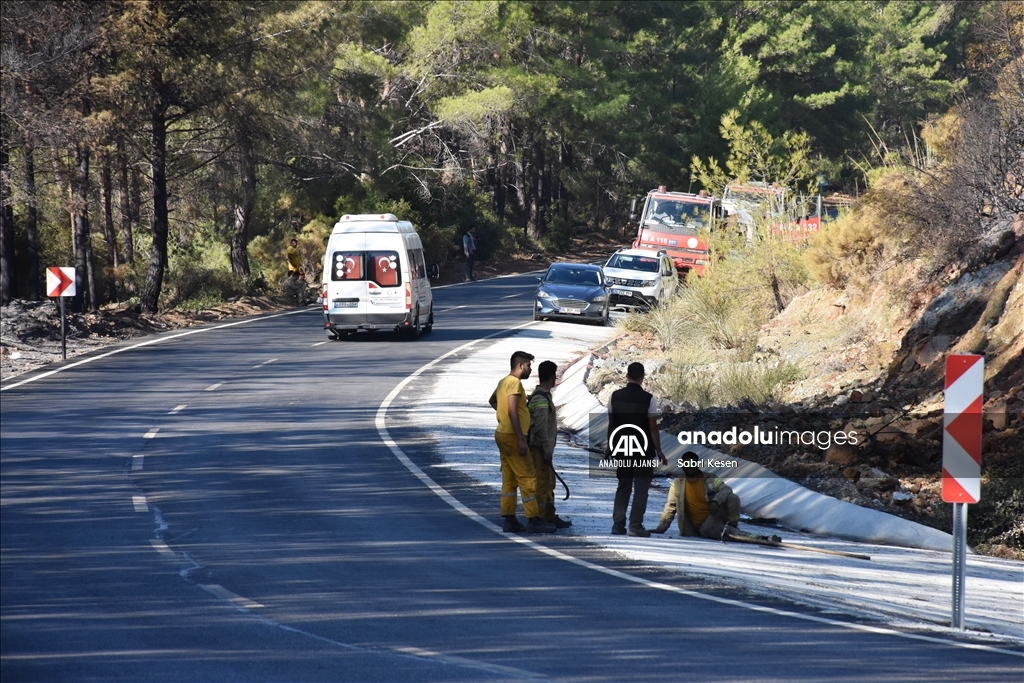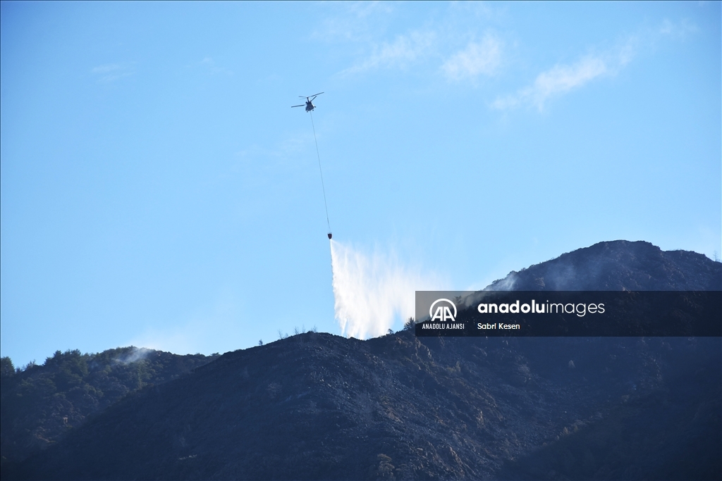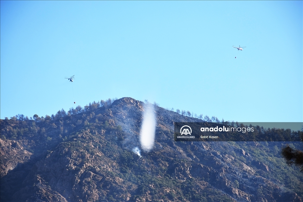 Muğla'nın Marmaris ilçesinde dün öğle saatlerinde başlayan ve rüzgarın etkisiyle geniş alanda etkili olan, sabah saatlerinde havadan müdahalenin yeniden başladığı orman yangını kontrol altına alındı. ( Sabri Kesen - Anadolu Ajansı )Sabri Kesen