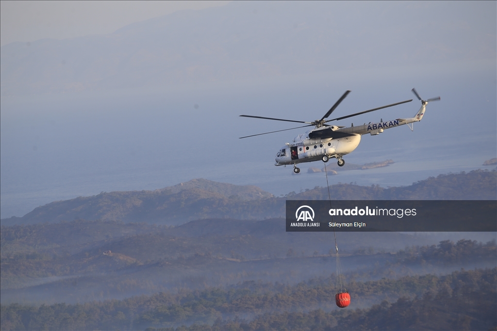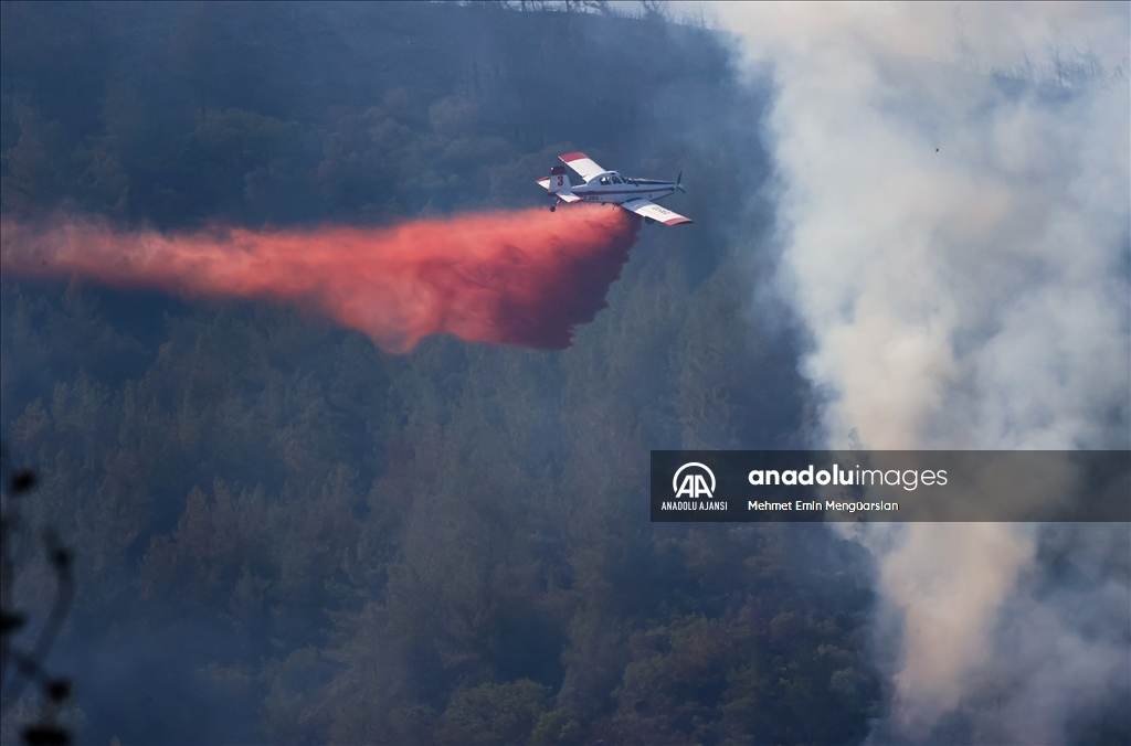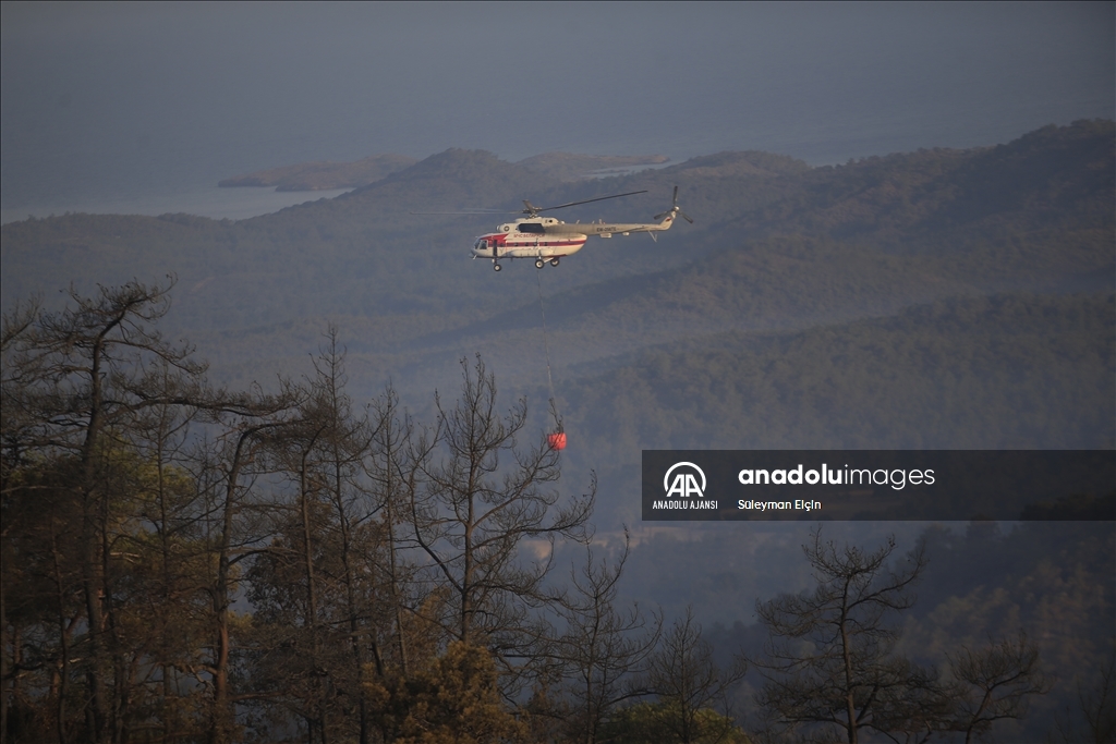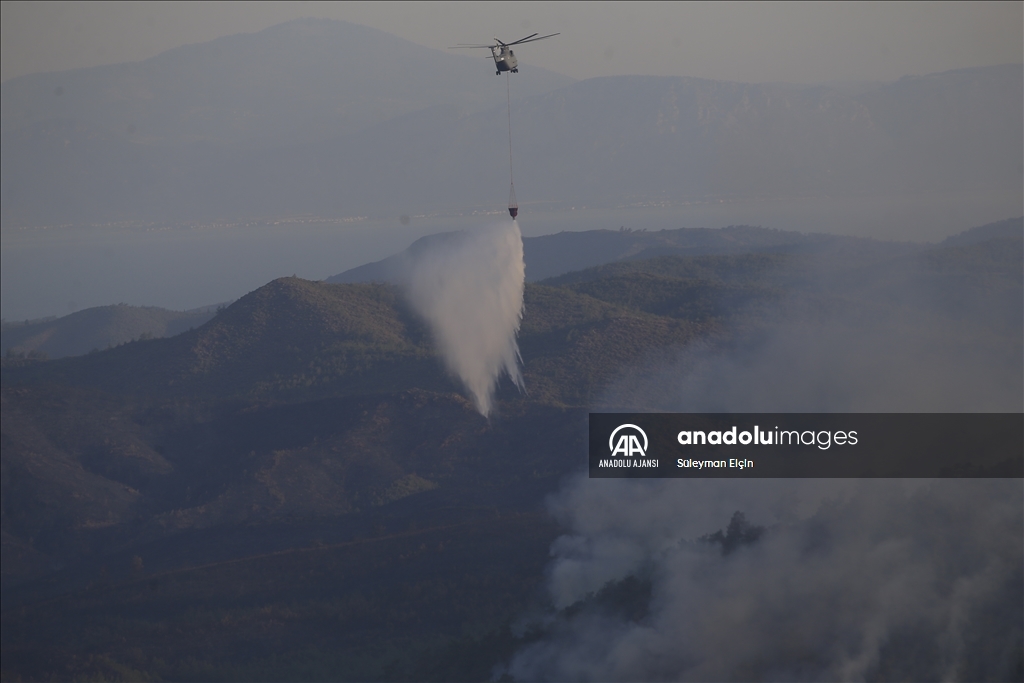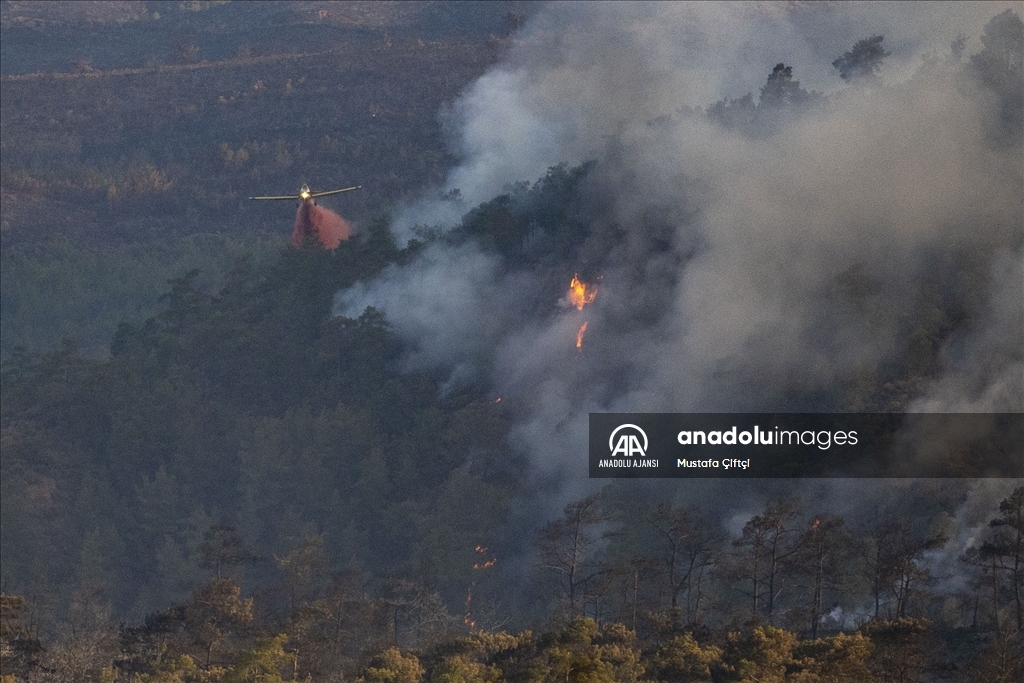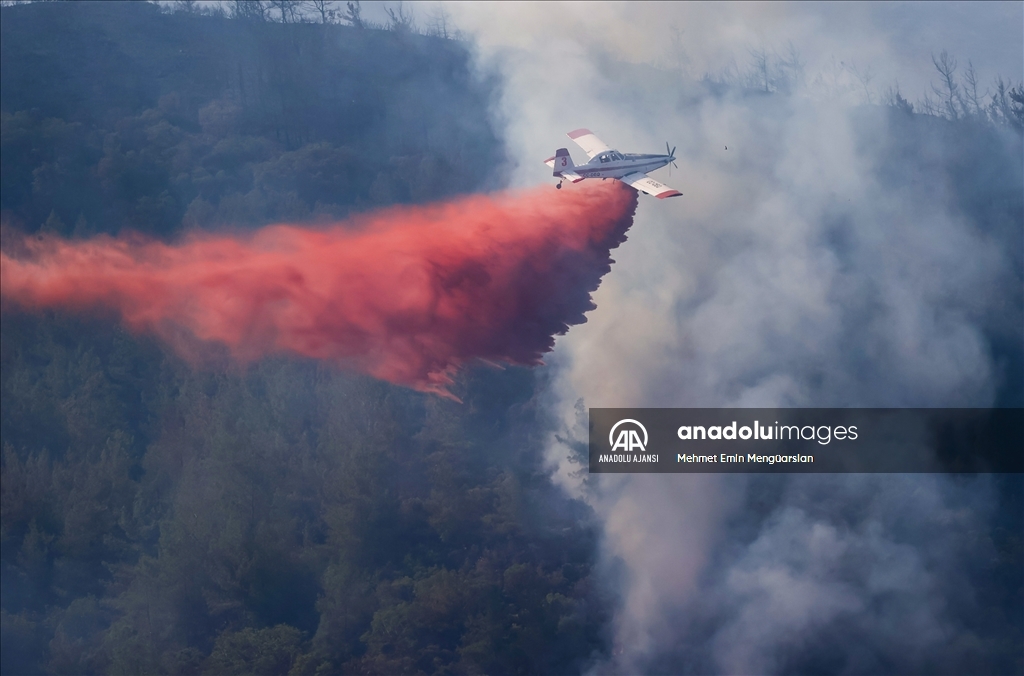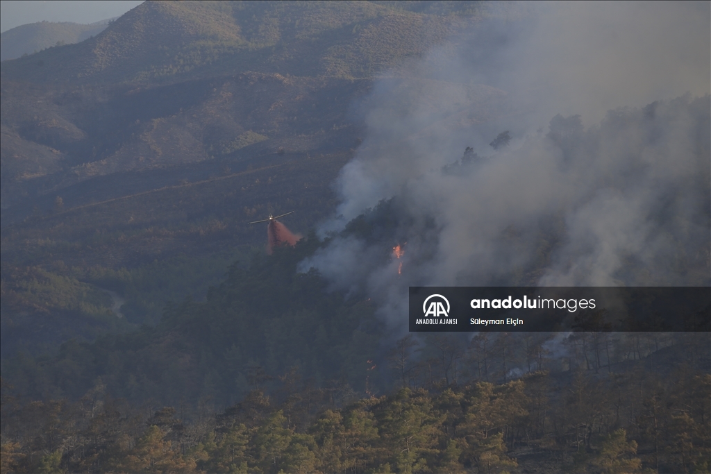 Muğla'nın Marmaris ilçesinde ormanlık alanda çıkan yangına havadan ve karadan müdahale ediliyor.