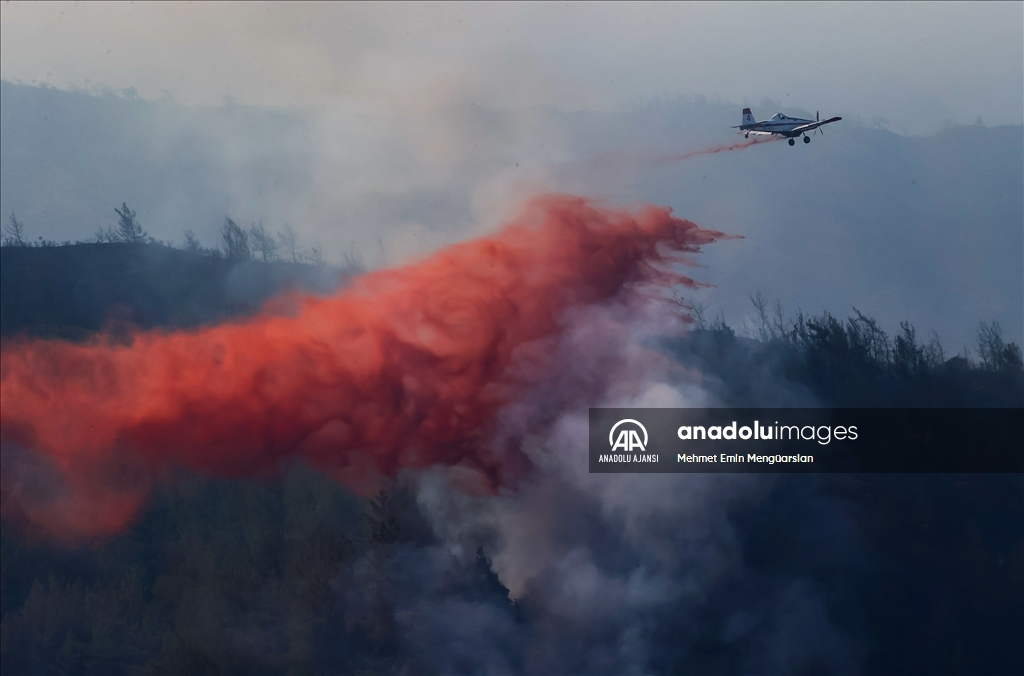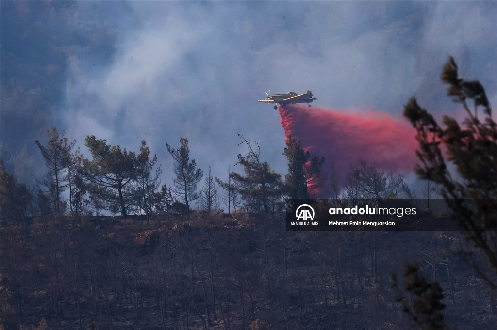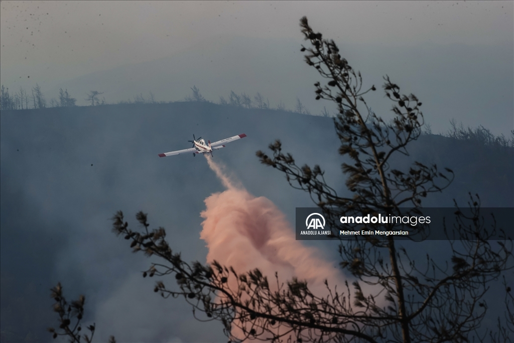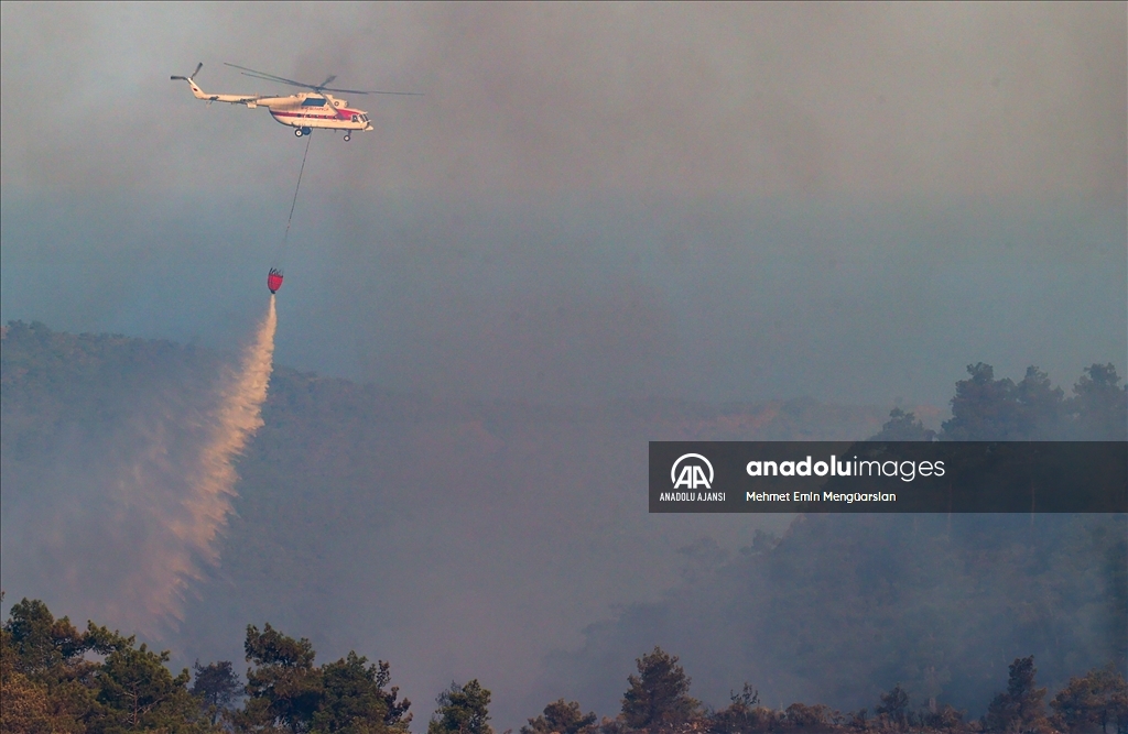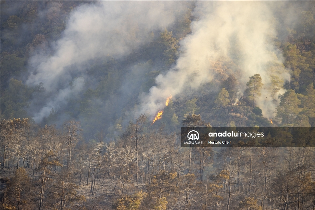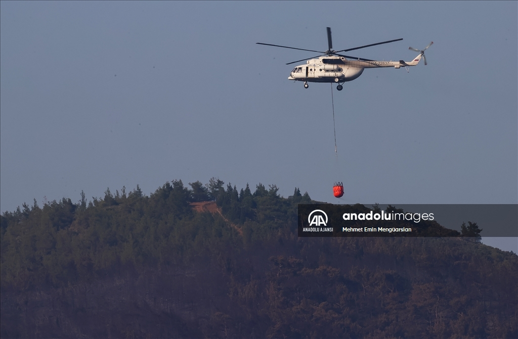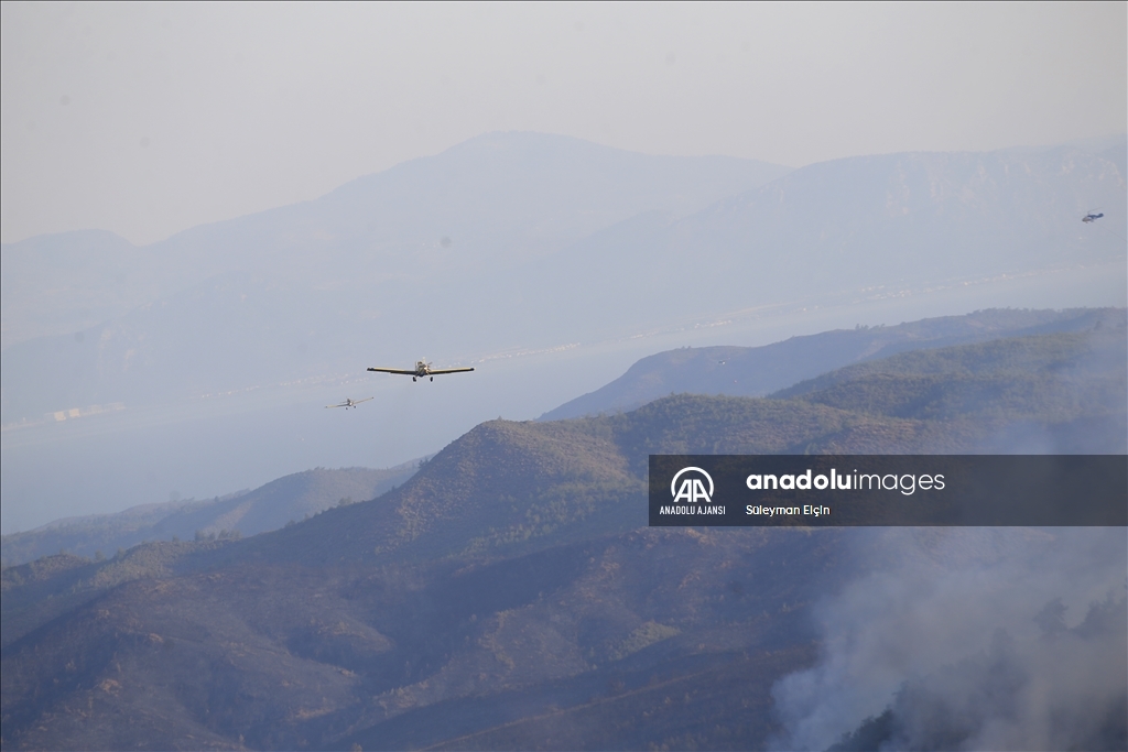 Muğla'nın Marmaris ilçesinde ormanlık alanda çıkan yangına havadan ve karadan müdahale ediliyor.