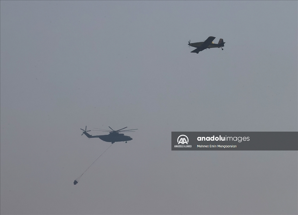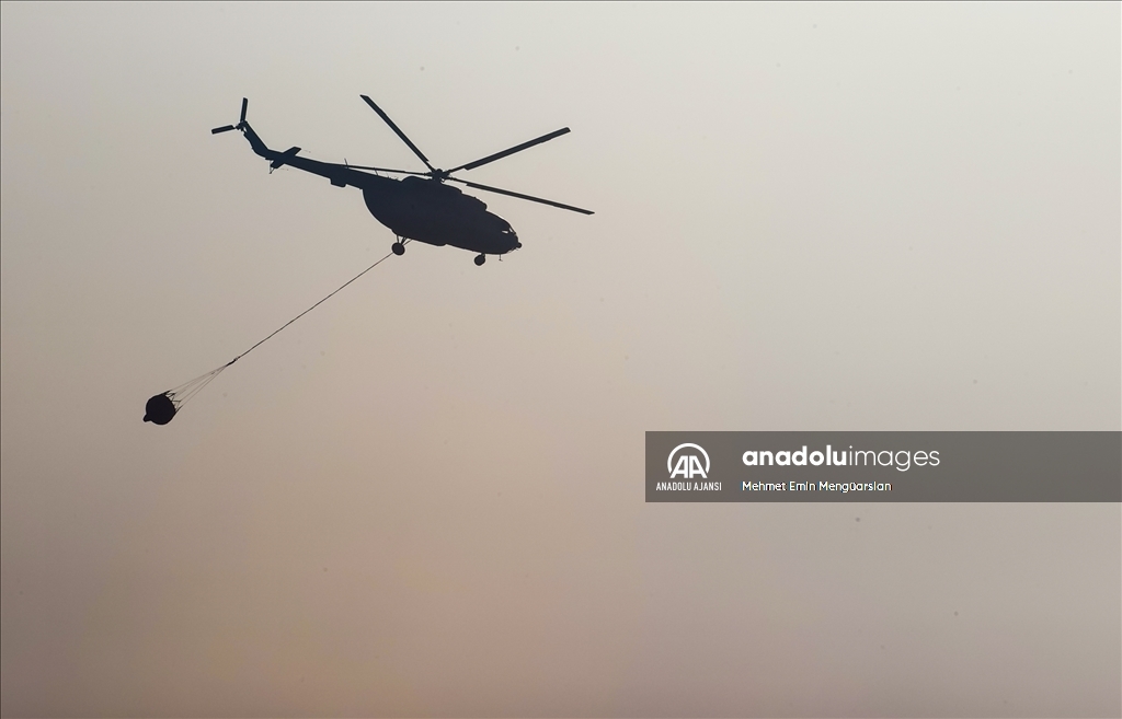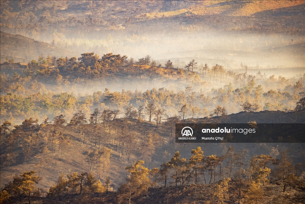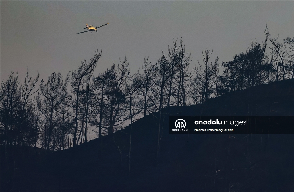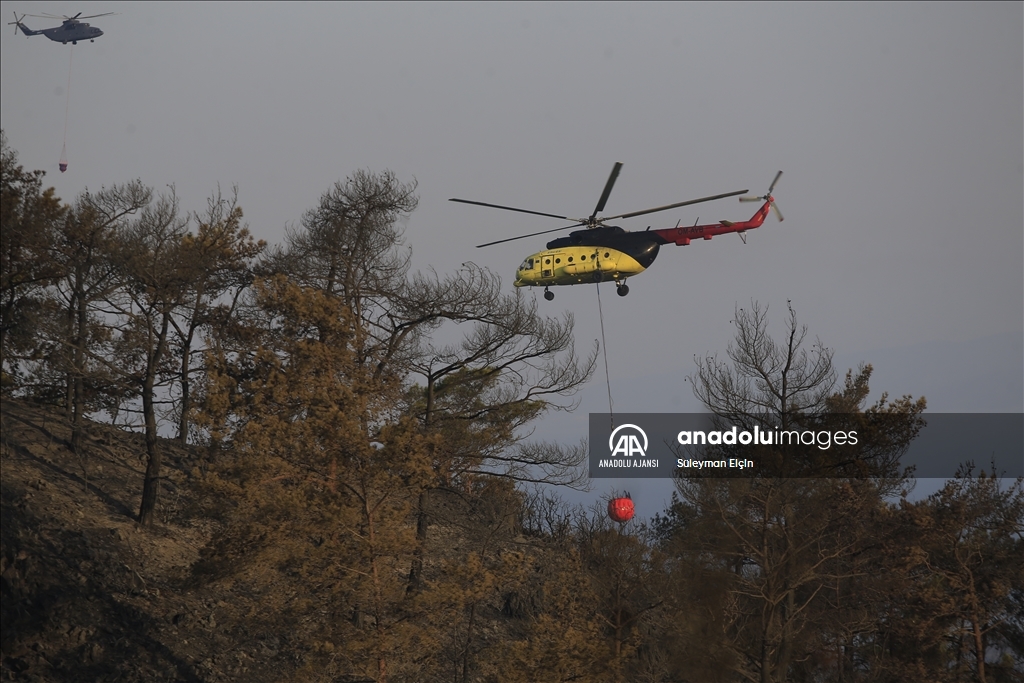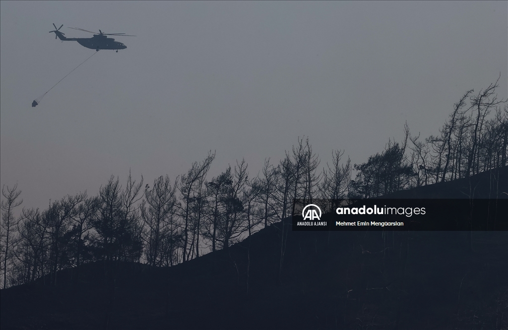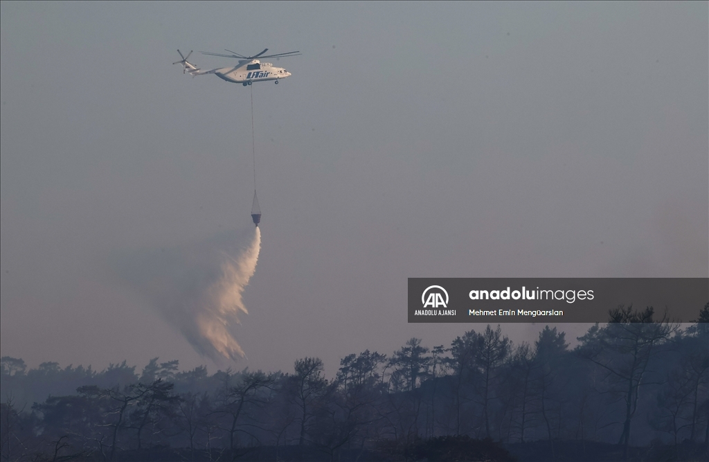 Muğla'nın Marmaris ilçesinde ormanlık alanda çıkan yangına havadan ve karadan müdahale ediliyor.