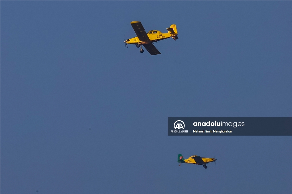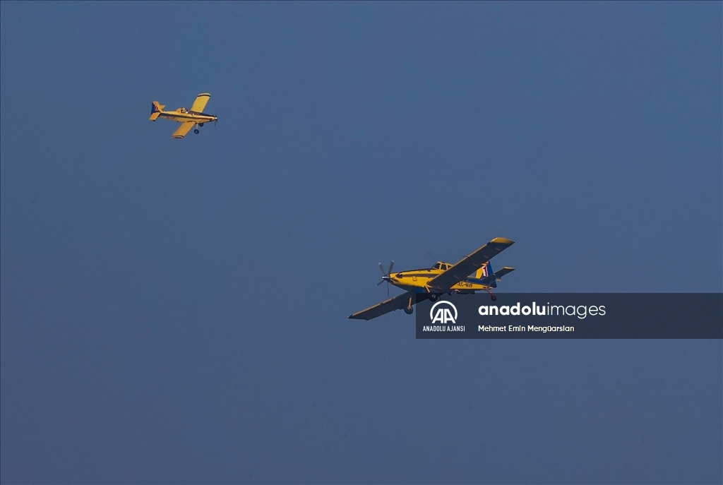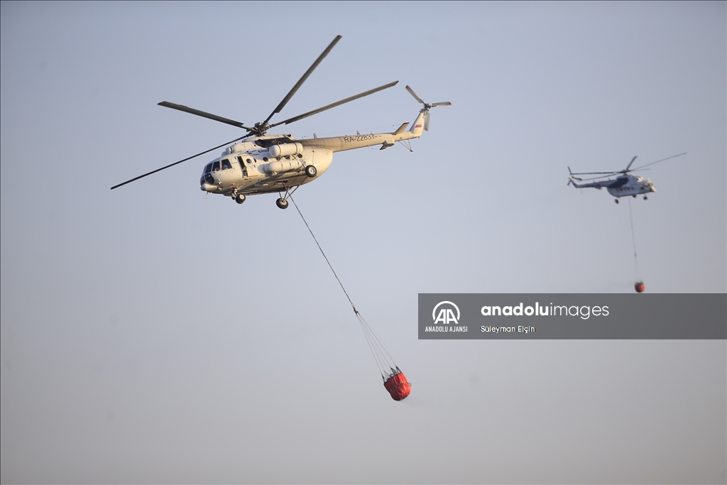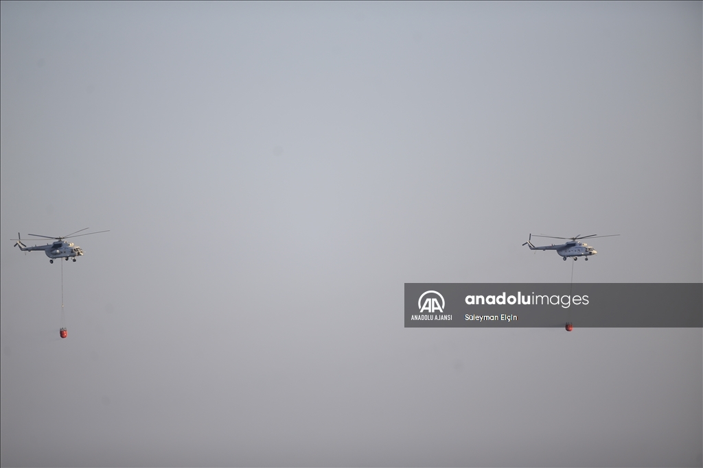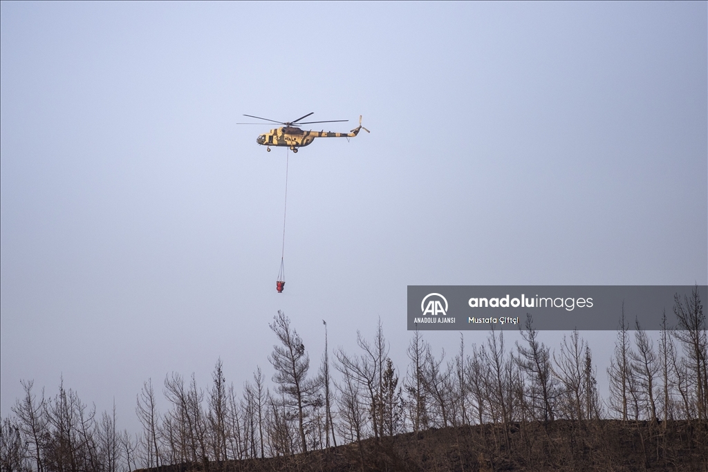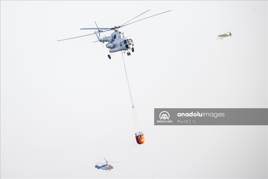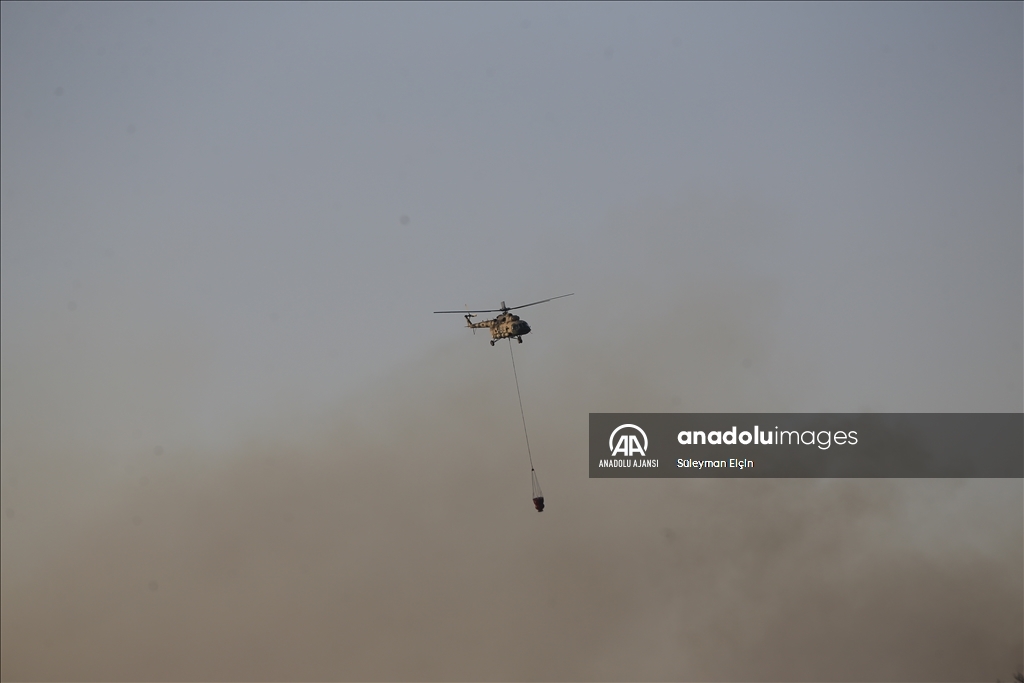 Muğla'nın Marmaris ilçesinde ormanlık alanda çıkan yangına havadan ve karadan müdahale ediliyor.
