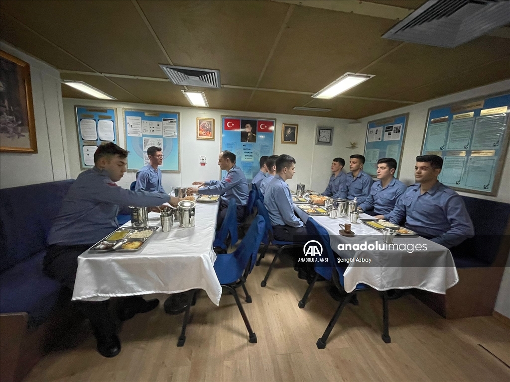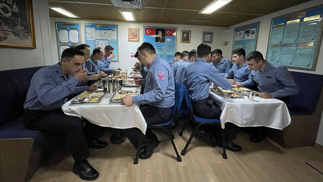 Deniz Kuvvetleri Komutanlığına bağlı TCG Salihreis Fırkateyni'nde görevli personel ilk iftarını yaptı.