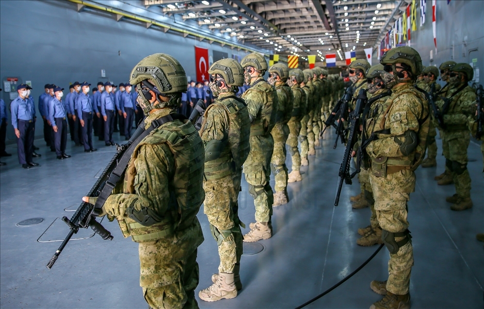 Deniz Kuvvetleri Komutanlığına bağlı yerli ve milli çıkarma gemisi TCG Bayraktar'da görevli personel ile gemideki amfibi deniz piyadeleri Ramazan Bayramı'na vatan nöbeti tutarak giriyor.