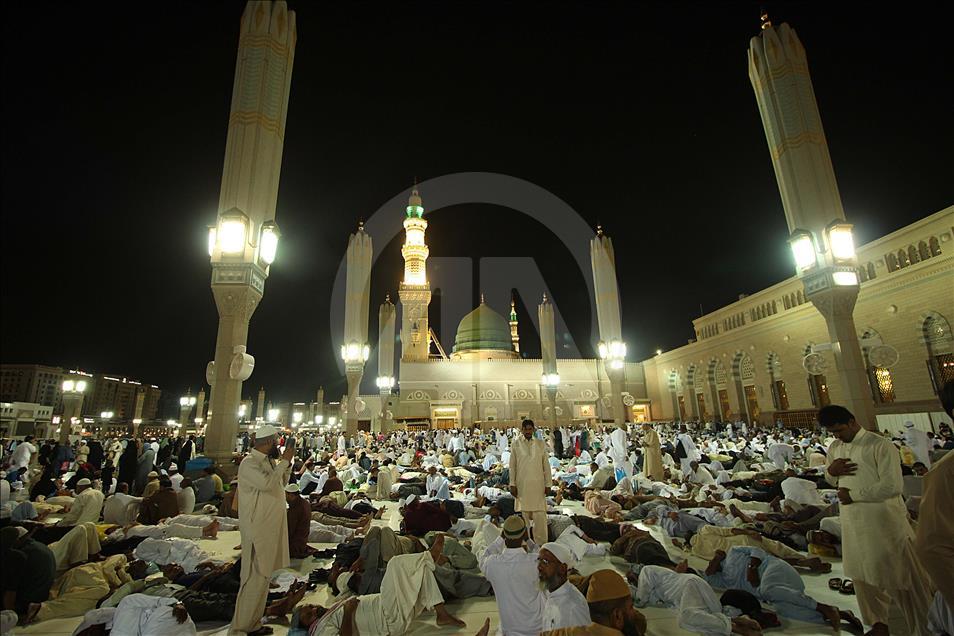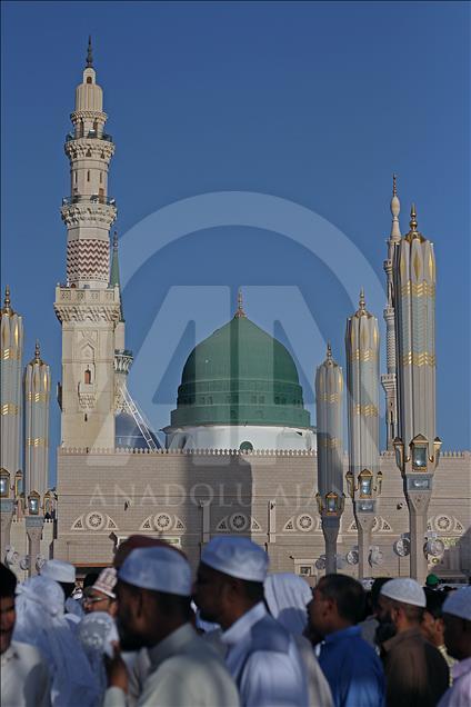 Suudi Arabistan'ın, Medine kentindeki Müslümanlar, Ramazan Bayramı namazını kılmak için Hazreti Muhammed'in kabrinin de bulunduğu Mescid-i Nebevi'ye geldi. ( Faisal Khan - Anadolu Ajansı )Faisal Khan