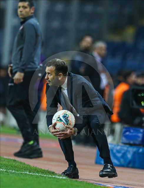 Süper Lig'in 9. Haftasında Medipol Başakşehir ile Trabzonspor, Başakşehir Fatih Terim Stadı'nda karşılaştı. Bir pozisyonda Medipol Başakşehirli teknik direktörü Okan Buruk topa müdahale etti. ( Salih Zeki Fazlıoğlu - Anadolu Ajansı )Salih Zeki Fazlıoğlu