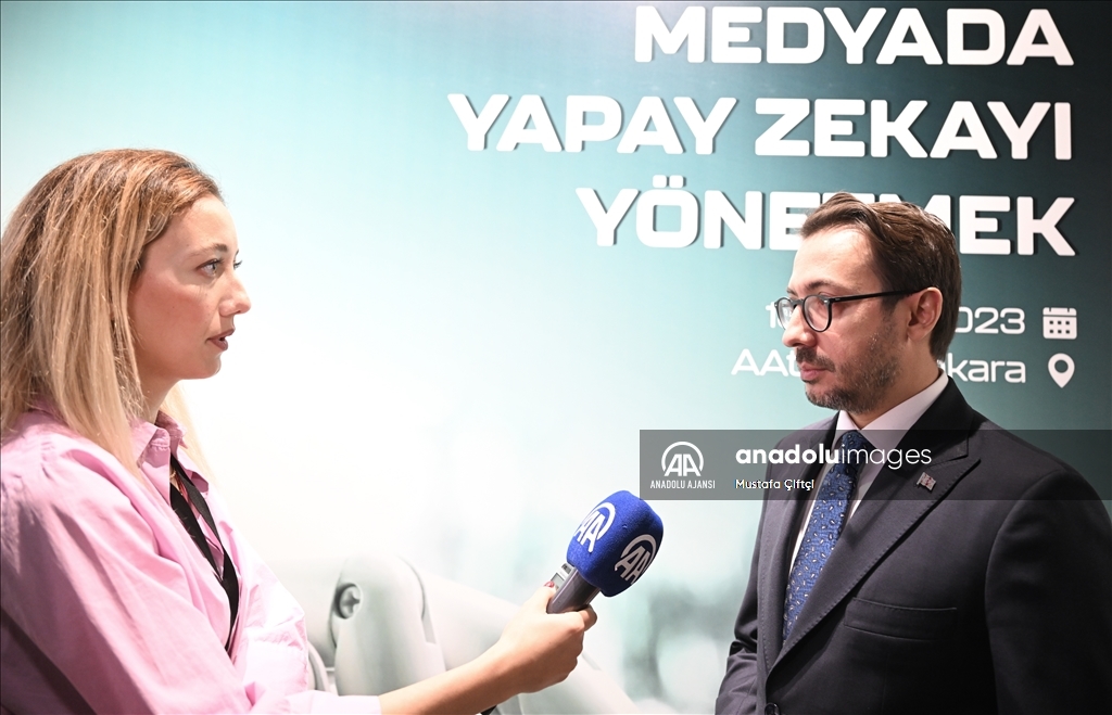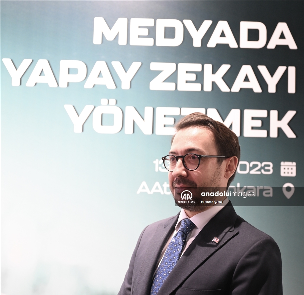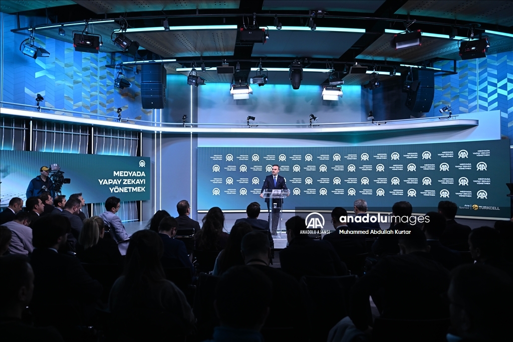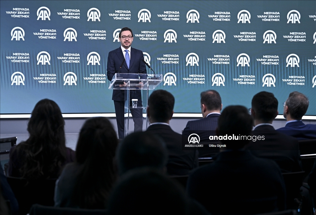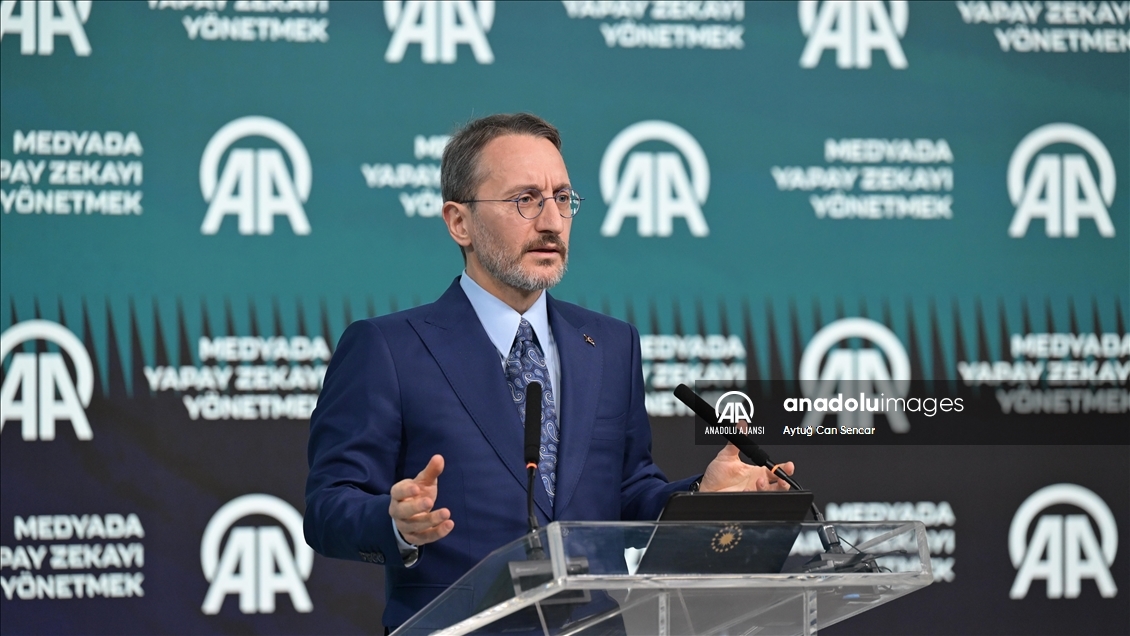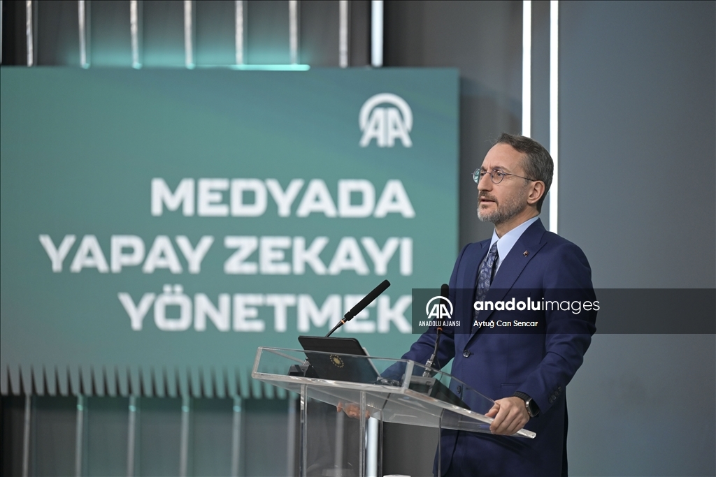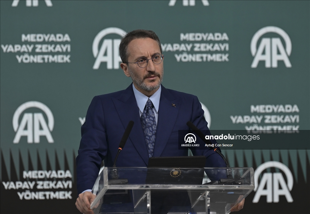 Cumhurbaşkanlığı İletişim Başkanı Fahrettin Altun, Anadolu Ajansı (AA) ile Bilişim Vadisi işbirliğinde ve Turkcell ana sponsorluğunda AAtölye'de düzenlenen "Medyada Yapay Zekayı Yönetmek" Forumu'nda konuşma yaptı. ( Aytuğ Can Sencar - Anadolu Ajansı )Aytuğ Can Sencar