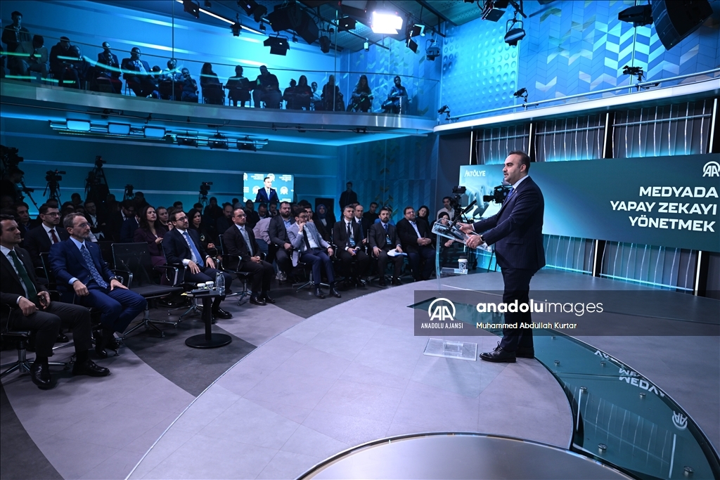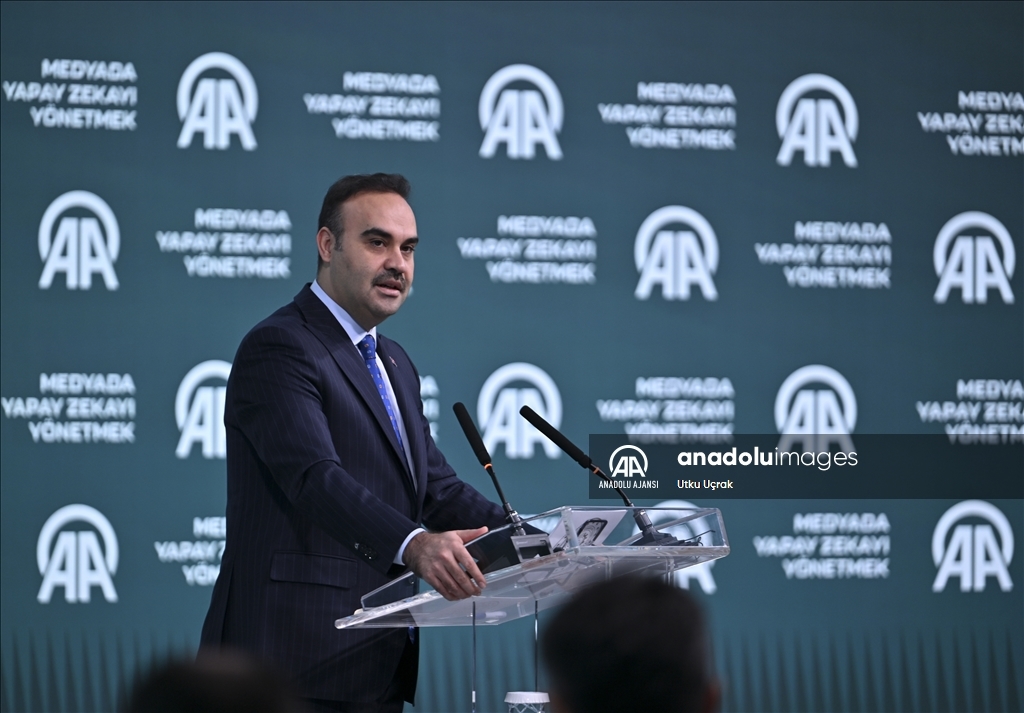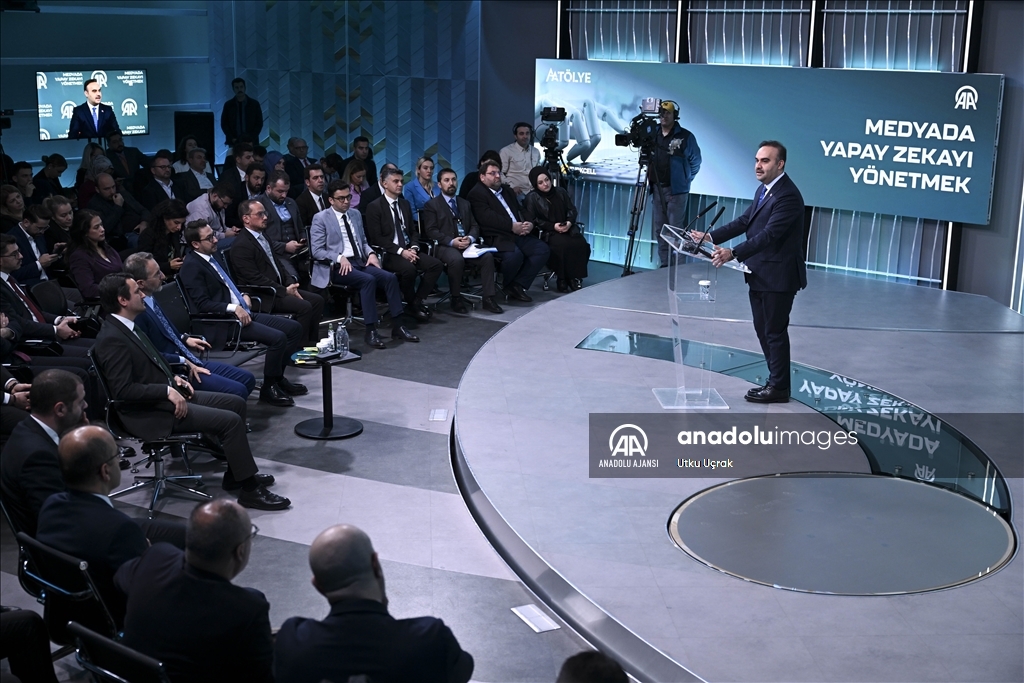 Sanayi ve Teknoloji Bakanı Mehmet Fatih Kacır, Anadolu Ajansı (AA) ile Bilişim Vadisi işbirliğinde ve Turkcell ana sponsorluğunda AAtölye'de düzenlenen "Medyada Yapay Zekayı Yönetmek" forumuna katılarak konuşma yaptı. ( Muhammed Abdullah Kurtar - Anadolu Ajansı )Muhammed Abdullah Kurtar
