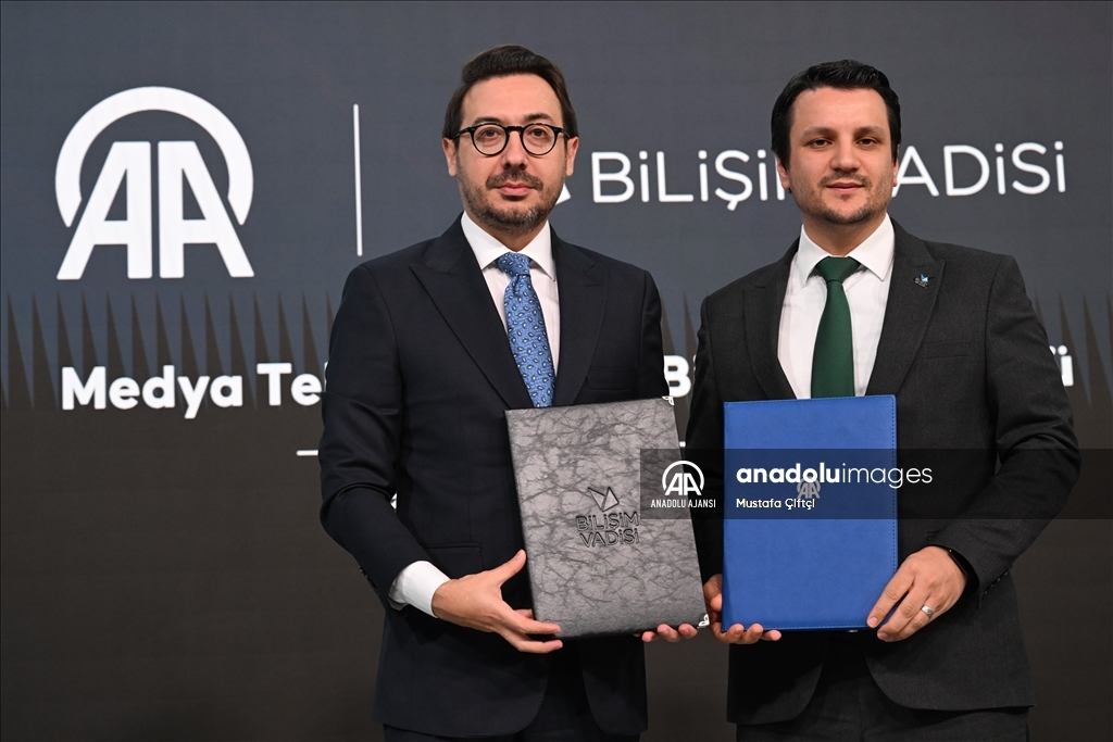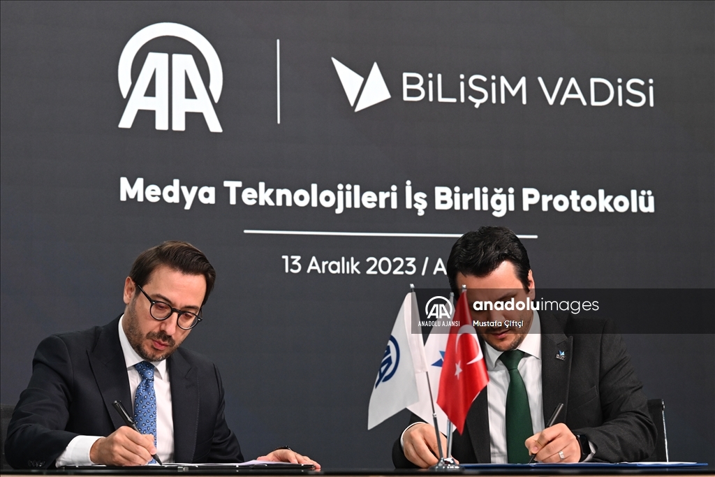 Anadolu Ajansı (AA) ile Bilişim Vadisi işbirliğinde ve Turkcell ana sponsorluğunda AAtölye'de "Medyada Yapay Zekayı Yönetmek" Forumu' gerçekleştirildi. Programda AA Yönetim Kurulu Başkanı ve Genel Müdürü Serdar Karagöz (solda) ile Bilişim Vadisi Genel Müdürü Erkam Tüzgen (sağda) tarafından Medya Teknolojileri İş Birliği Protokolü imzalandı. ( Mustafa Çiftçi - Anadolu Ajansı )Mustafa Çiftçi