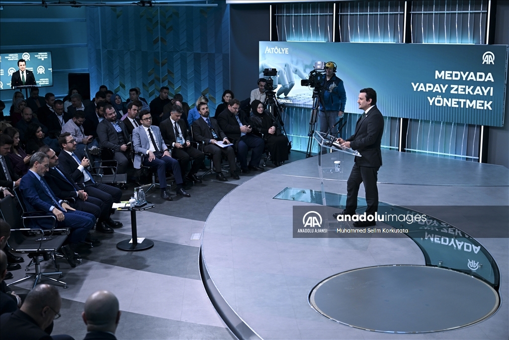 AA Yönetim Kurulu Başkanı ve Genel Müdürü Serdar Karagöz, Anadolu Ajansı (AA) ile Bilişim Vadisi işbirliğinde ve Turkcell ana sponsorluğunda AAtölye'de düzenlenen "Medyada Yapay Zekayı Yönetmek" Forumu'nda konuşma yaptı. ( Utku Uçrak - Anadolu Ajansı )Utku Uçrak